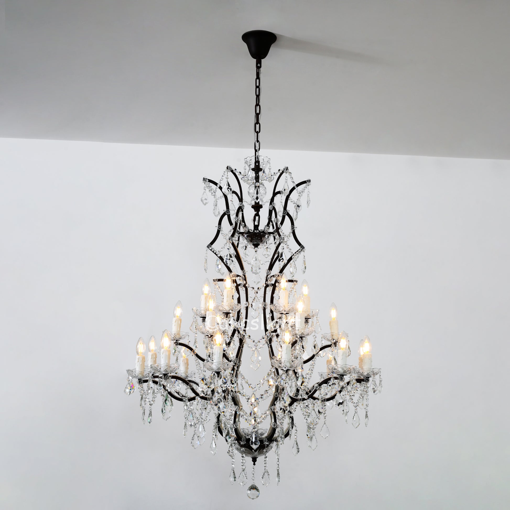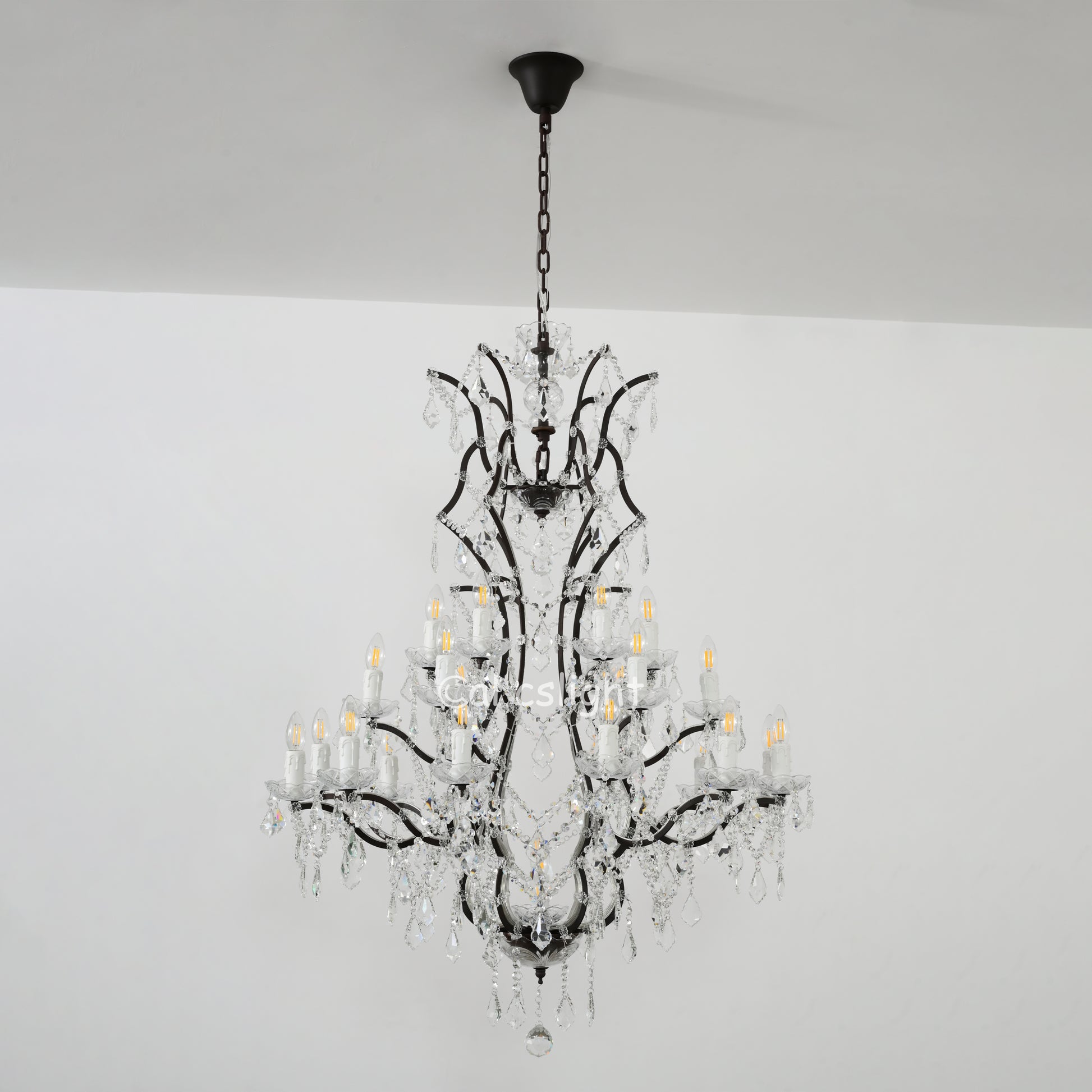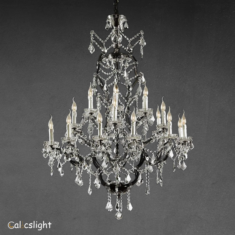 Inspired by the elegance of 19th-century European lighting, the Rocaille Collection blends ornate form with timeless sparkle. Each chandelier features a sculptural hand-forged metal frame, adorned with a cascade of precision-cut crystal prisms that capture and reflect the light in every direction. The contrast between the rustic finish and the refined crystal detailing creates a look that is both romantic and dramatic—perfect for dining rooms, entryways, or any space in need of a grand statement.