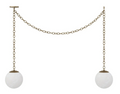 The Alabaster 2 Swag Chandelier features dual elegantly suspended alabaster shades that emit a warm, diffused glow. Its sophisticated design adds a touch of modern elegance, making it perfect for dining areas, living spaces, or entryways.