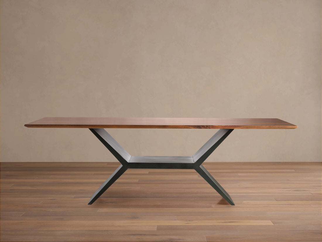 This rectangular dining table uses contrasting materials to create a unique industrial modern design. The...