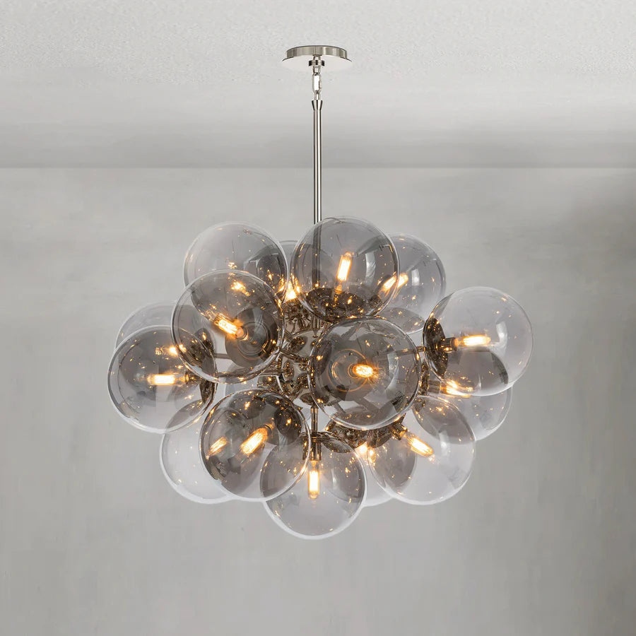 The Mandoza Nickel Glass Chandelier showcases a polished nickel frame paired with hand-blown glass globes,...