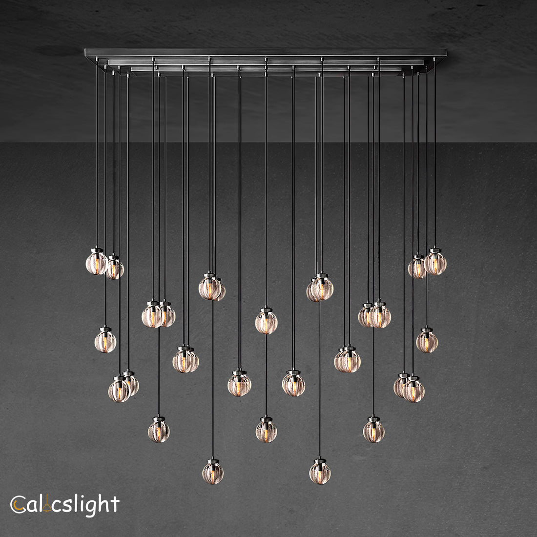 The Glass Globe collection showcases exquisite craftsmanship with handblown glass globes floating at both ends...