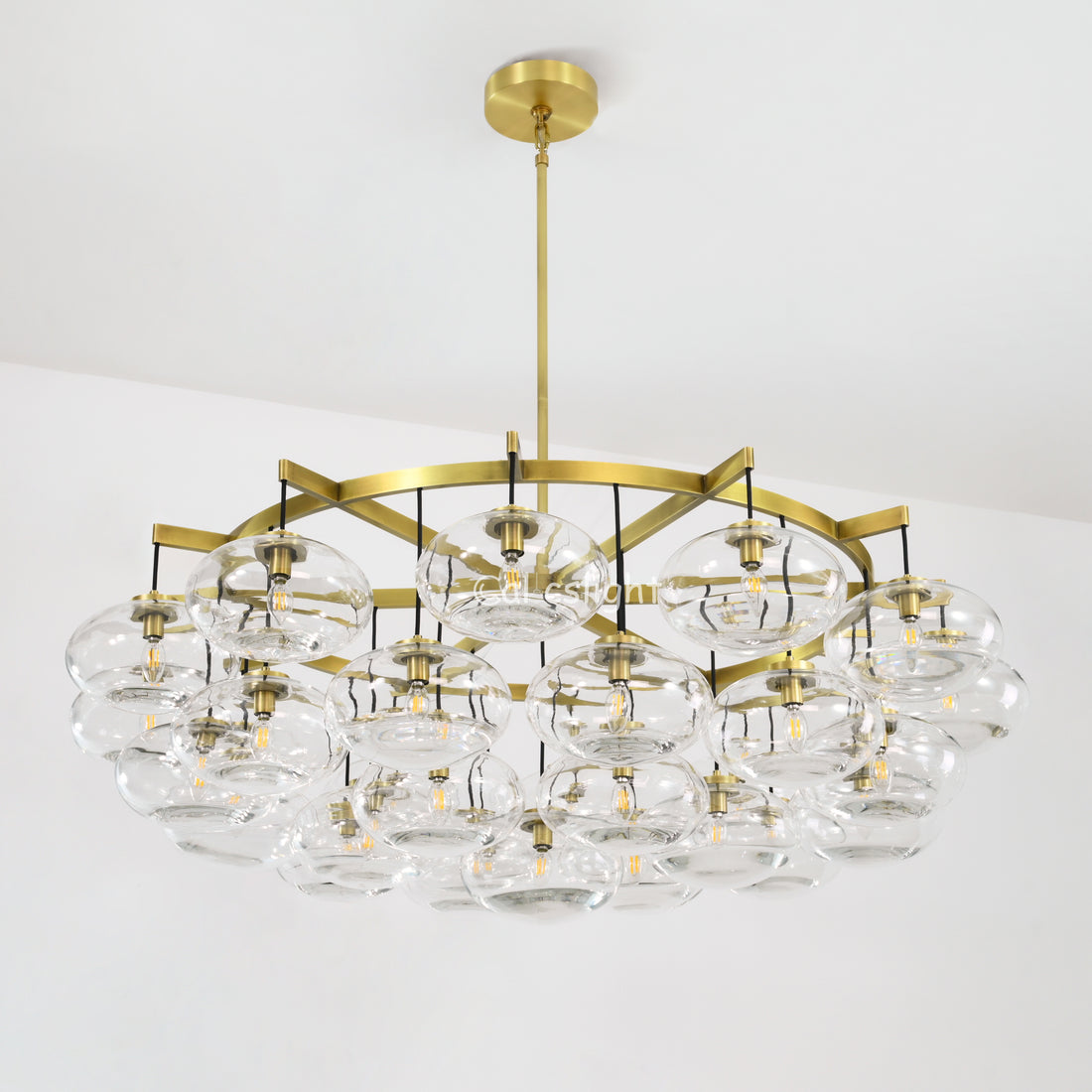 The Cabrett Round Chandelier 60" features a stunning design with handcrafted steel and blown glass...