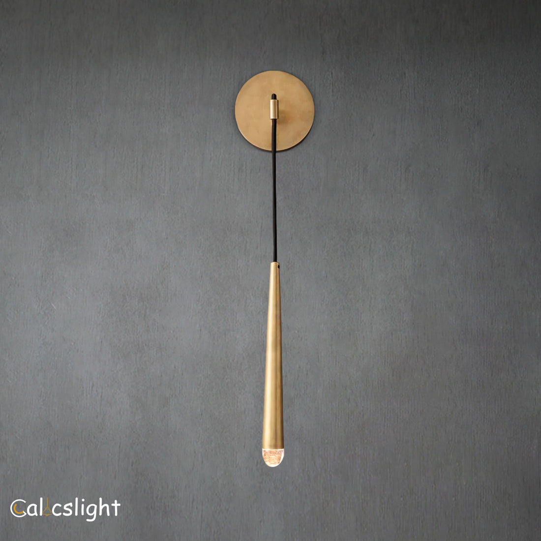 This sleek wall sconce features a tapered solid brass form mounted on a sharply defined...