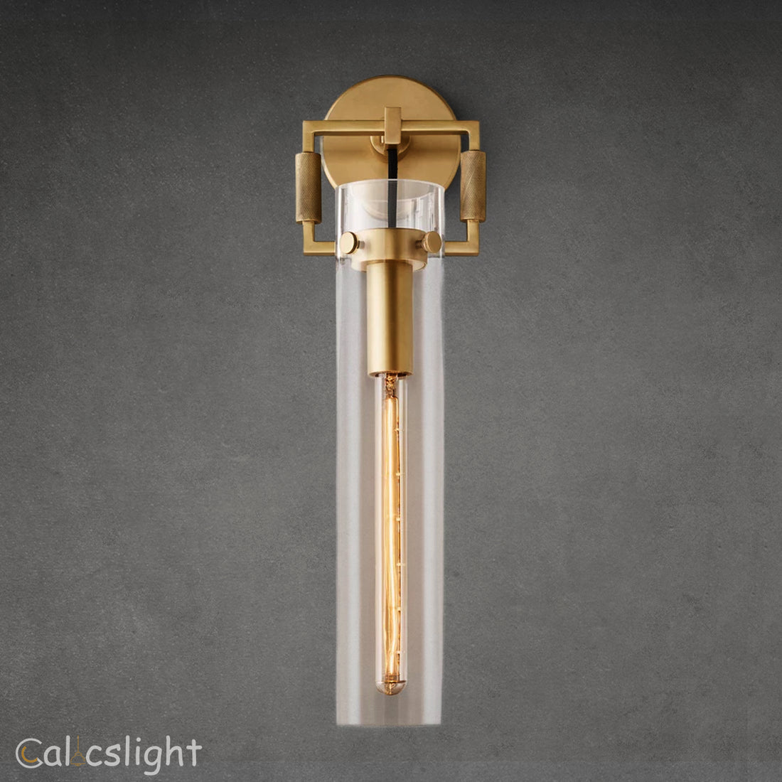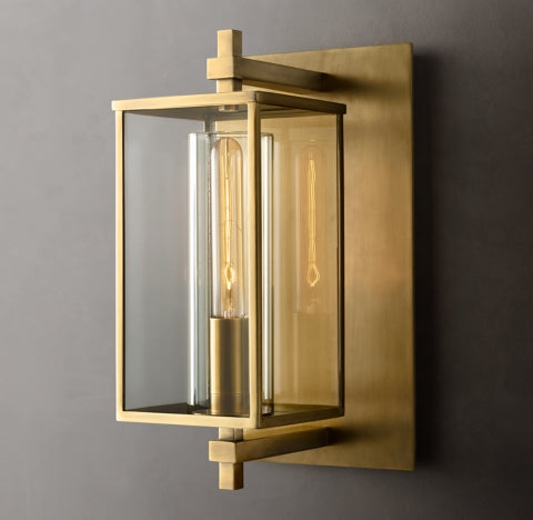 This wall sconce has created a masterful study of solid and void. A monumental block of...