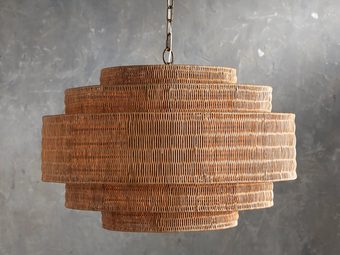The tiered, handwoven rattan shade of our Paloma Lighting Collection enhances any living or dining...