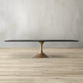 The Aero series draws inspiration from the flowing lines of mid-century design and focuses exclusively on dining and coffee tables. Balanced proportions and arched, sculptural curves define a minimalist yet confident silhouette, while a cast-steel pedestal base offers sturdy support and generous legroom. Paired with a finely beveled oak or walnut top, the restrained sheen of metal contrasts elegantly with the warmth of wood. From dining gatherings to relaxed living-room conversations, Aero carries a unified design language across sizes—light yet grounded—balancing durability with everyday tactility.