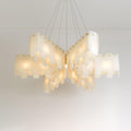 Each alabaster piece is carefully selected for its natural beauty, with subtle veins and translucence that softly diffuse light, radiating a glow that is both serene and luxurious. The brass connectors add a touch of sophistication with their polished gleam, providing a perfect counterpoint to the alabaster's soft matte finish.