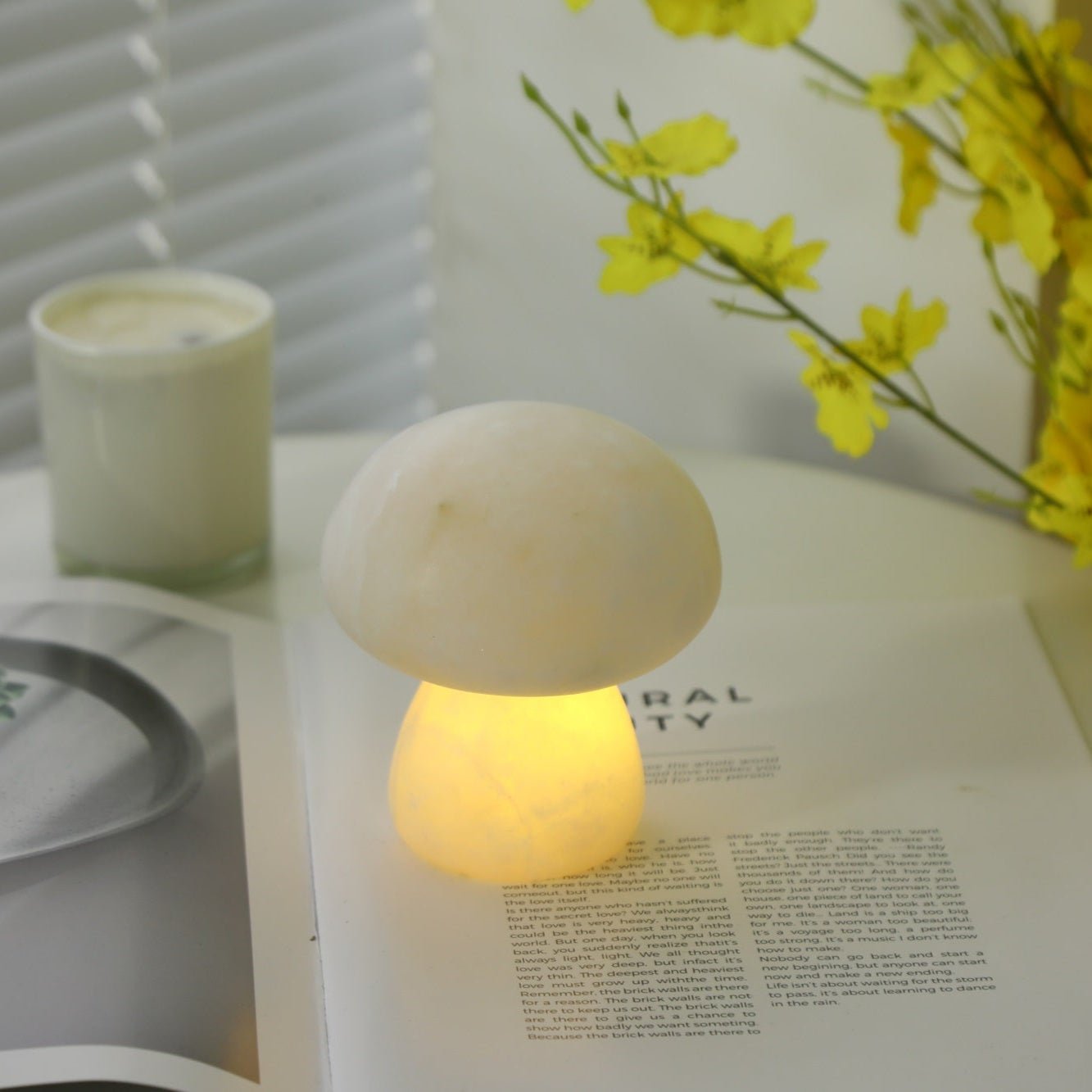 This Alabaster Mushroom Table Lamp with its white marble base can take a room from dull and lifeless to a high-end, tasteful interior design. Whether it's a bedroom, living room, entryway, or home office, this elegant table lamp is the perfect way to add a modern flair to any indoor environment.