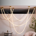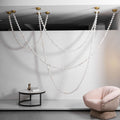 The Alabaster Pearl Necklace Chandelier by Calicslight is a breathtaking fusion of sculptural design and refined elegance. Featuring cascading strands of alabaster-like beads, this chandelier mimics the flowing beauty of a pearl necklace draped effortlessly across the ceiling. Each glowing orb casts a warm, diffused light, creating a soft, ambient atmosphere while making a striking visual statement. Anchored by minimalist brass mounts, the flexible arrangement allows for artistic customization in layout and shape. Ideal for luxurious living rooms, grand foyers, or curated retail spaces, this piece embodies Vakkerlight’s dedication to poetic form and timeless craftsmanship.