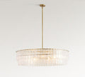 Avalon series lighting crafted from rippled artisan glass and framed in iron with a Vintage Brass finish, the Avalon pendant brings sculptural elegance to any space. Each textured glass panel diffuses a warm, dimensional glow, creating a refined statement that balances modern simplicity with timeless craftsmanship.