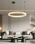 Black Metal Modern Round Ring Alabaster Pendant Light
