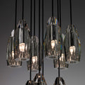 The Chatain Round Chandelier is made up of ten lead crystal pendants. All parts are hand polished and patina'd. The ceiling plate and socket covers are also made by hand