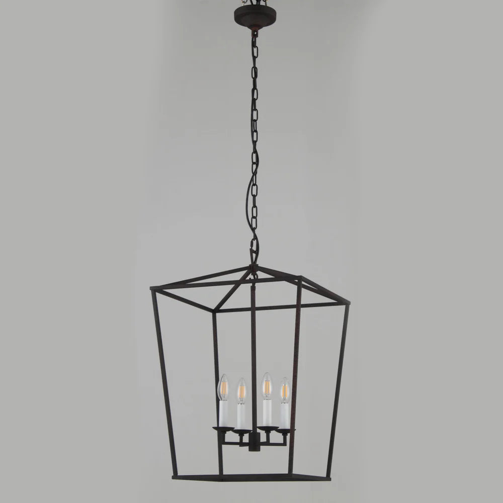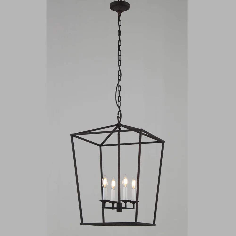 The Chris Graff Lantern Pendant Light is a refined blend of minimalist geometry and classic charm. With its solid iron frame in a clean 12" wide silhouette and a height of 18", it fits effortlessly over kitchen islands, entryways, or dining spaces. The open lantern design showcases four elegant candle-style bulbs, casting a warm and inviting glow.