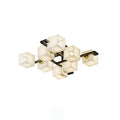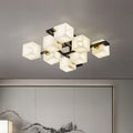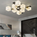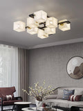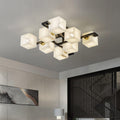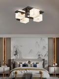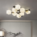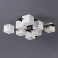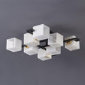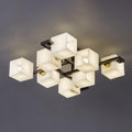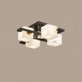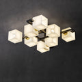This unique lighting solution is expertly designed to blend minimalist architecture with the natural allure of alabaster. Crafted with meticulous attention to detail, each alabaster stone cube is carefully selected for its ethereal translucency and intrinsic patterns, which softly diffuse the light to create a serene and welcoming atmosphere. Supported by a sleek metal frame, the alabaster blocks form a captivating geometric configuration that transforms your ceiling into a modern masterpiece. The compact design allows for versatility in placement, making it an impeccable choice for areas with limited space or lower ceilings. Whether gracing the entryway, enhancing a cozy corner, or bringing a touch of luxury to a bedroom, this ceiling lamp promises to infuse your home with a warm, inviting glow and a dash of modern artistry.