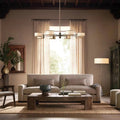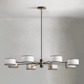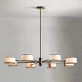The Daphne Round Chandelier is a French-inspired lighting fixture that combines clean lines with elegant finishes. Crafted from steel, it is available in two finishes: bronze with a white linen shade featuring black trim, and light bronze with a cream parchment shade featuring brown trim. The Daphne Round Chandelier is ideal for adding a touch of sophistication to dining rooms, entryways, or living spaces.