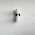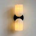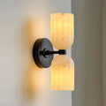 This wall sconce features two ribbed alabaster shades, showcasing the stone's natural, marbled patterns and soft, warm tones. Mounted on a polished brass backplate, the sconce emits a gentle, ambient glow, blending the organic elegance of alabaster with the luxurious sheen of brass. Ideal for adding a touch of refined sophistication to hallways, bedrooms, or living spaces, it merges natural beauty with upscale design.