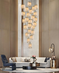 Consider this cluster marble copper chandeliers. It combines metal and marble materials to bring a unique aristocratic atmosphere to the hall. The natural texture of marble complements the luster of brass or copper, adding nobility and elegance to the hall.