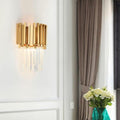 Enoch Crystal Grand Wall Sconce emits the purest form of its illumination into your interior space. Its raw elegance is created through the brilliance of raw crystal and noble materials.