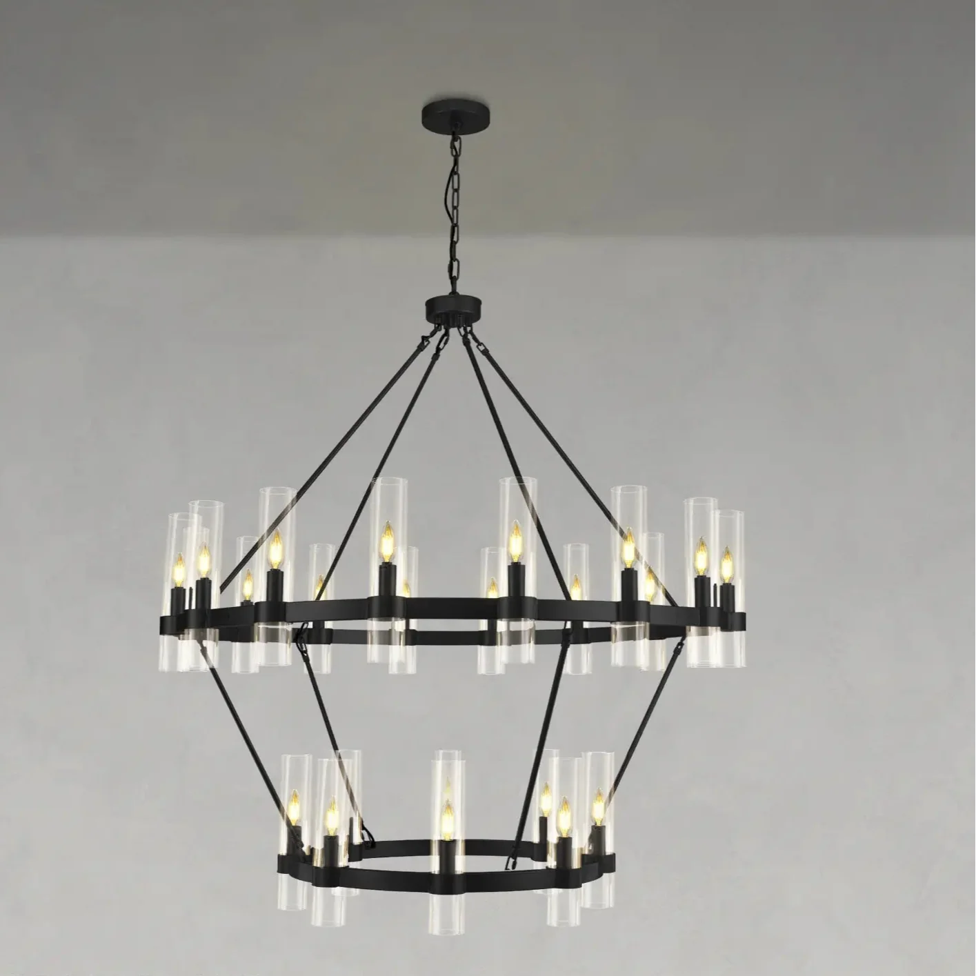 Aetheris Round Chandelier 48“ 60” is made of clear glass to maximize light and brightness. Not only do they illuminate the darkness better, but they also decorate the house nicely. Whether it's modern decor or vintage farmhouse style, these chandeliers will fit in perfectly.
