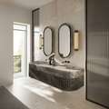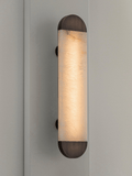 The Ghost Wall Lamp is meticulously handcrafted in Calicslight using authentic alabaster and unpolished bronze. Its design honors the raw, brutalist nature of these materials, combining timeless elegance with understated sophistication. This lamp offers a distinctive interplay of texture and light, perfect for enhancing interiors with a refined yet natural aesthetic.