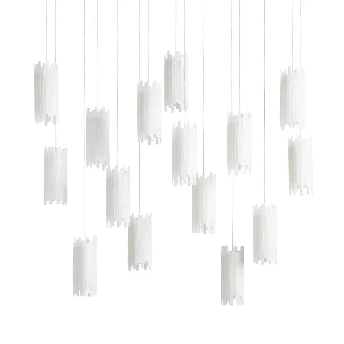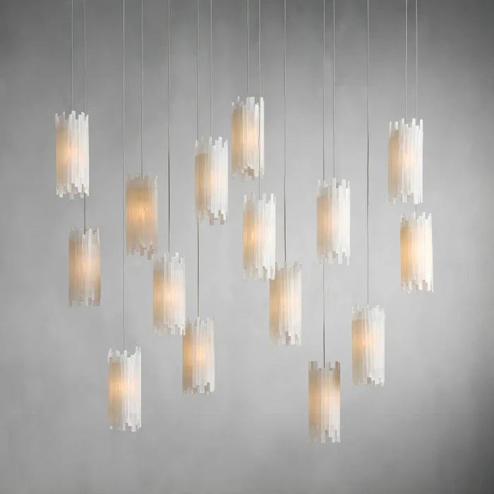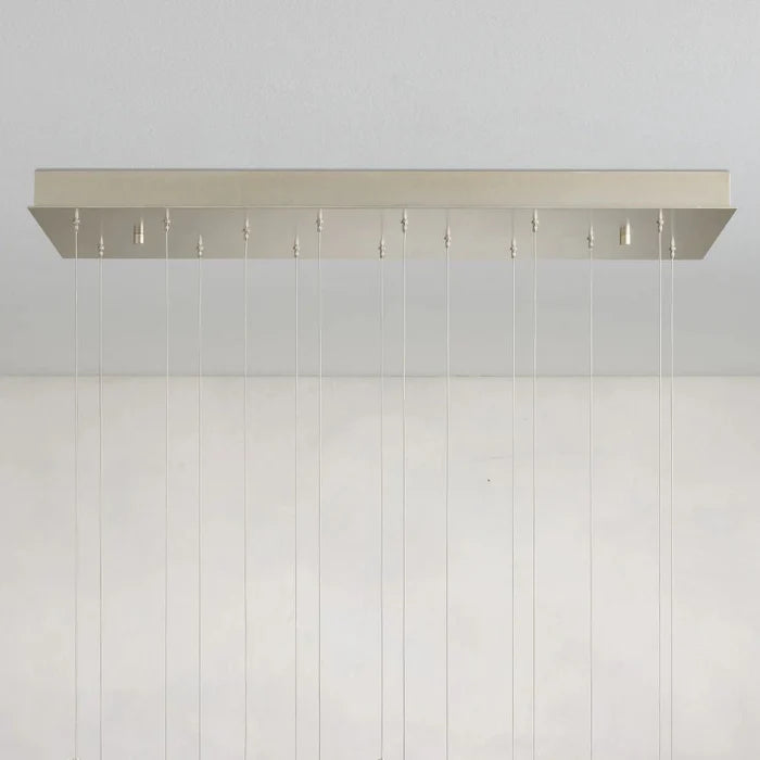 Made from hand-forged iron, the Gianna Rectangular Chandelier features an antique finish with draped crystal beads and ornate scrollwork. Its elongated design adds vintage elegance and balanced illumination to dining tables, kitchen islands, or long spaces.