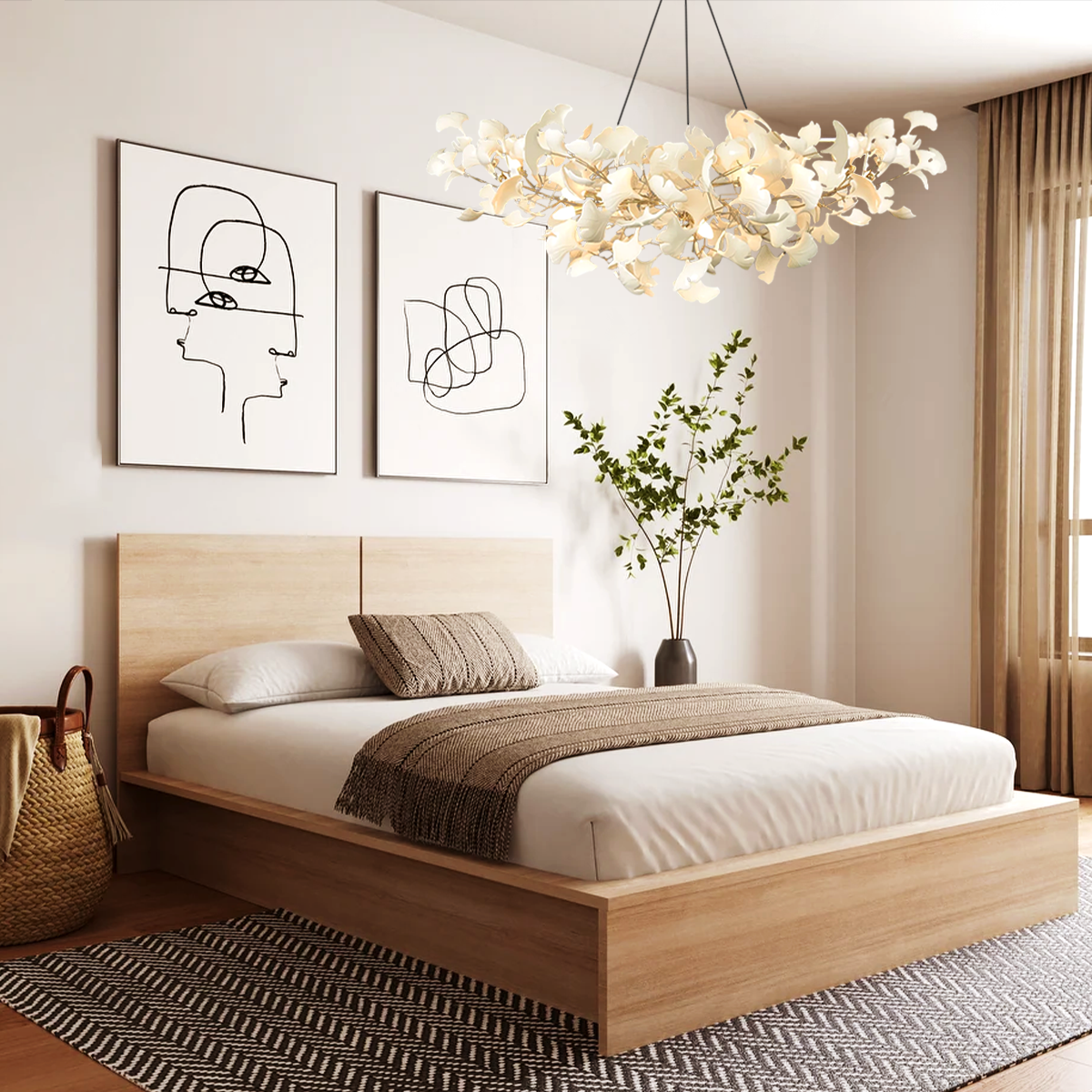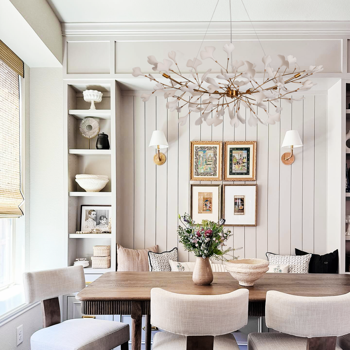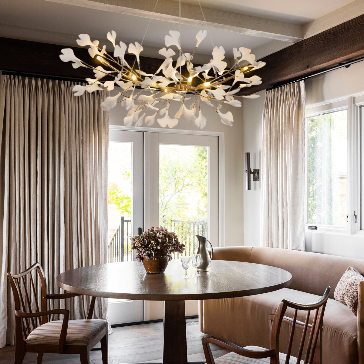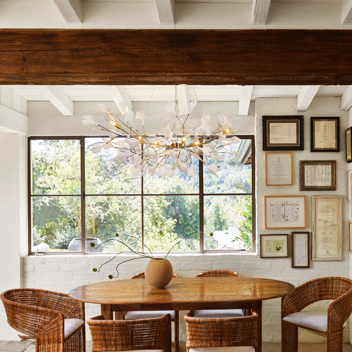 Experience elegance with the Ginkgo Chandelier Style B. Featuring a metal body and handmade porcelain leaves, it blends luxury and nature, casting a warm, soothing glow that transforms any space into a refined sanctuary.
