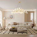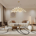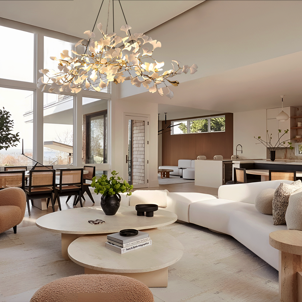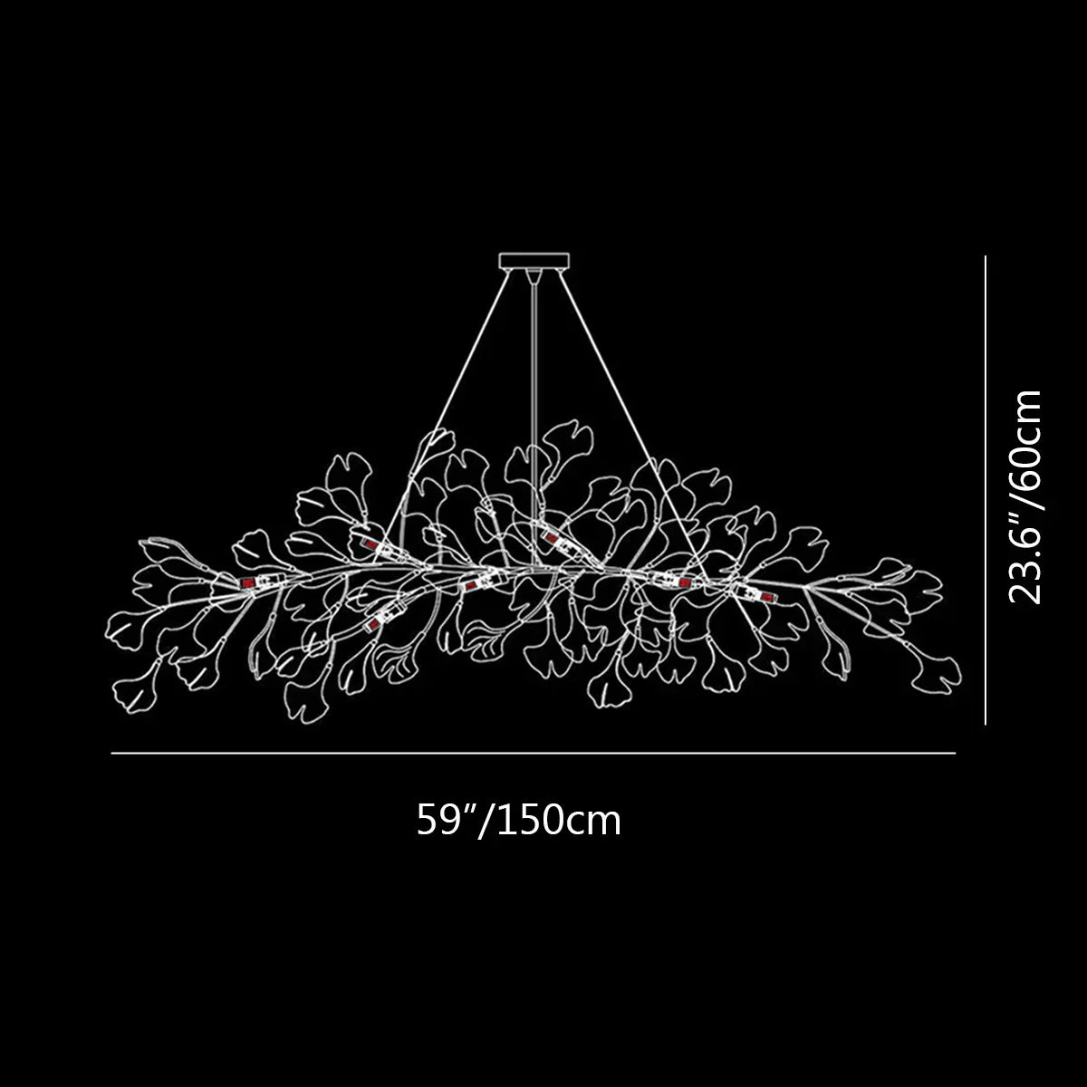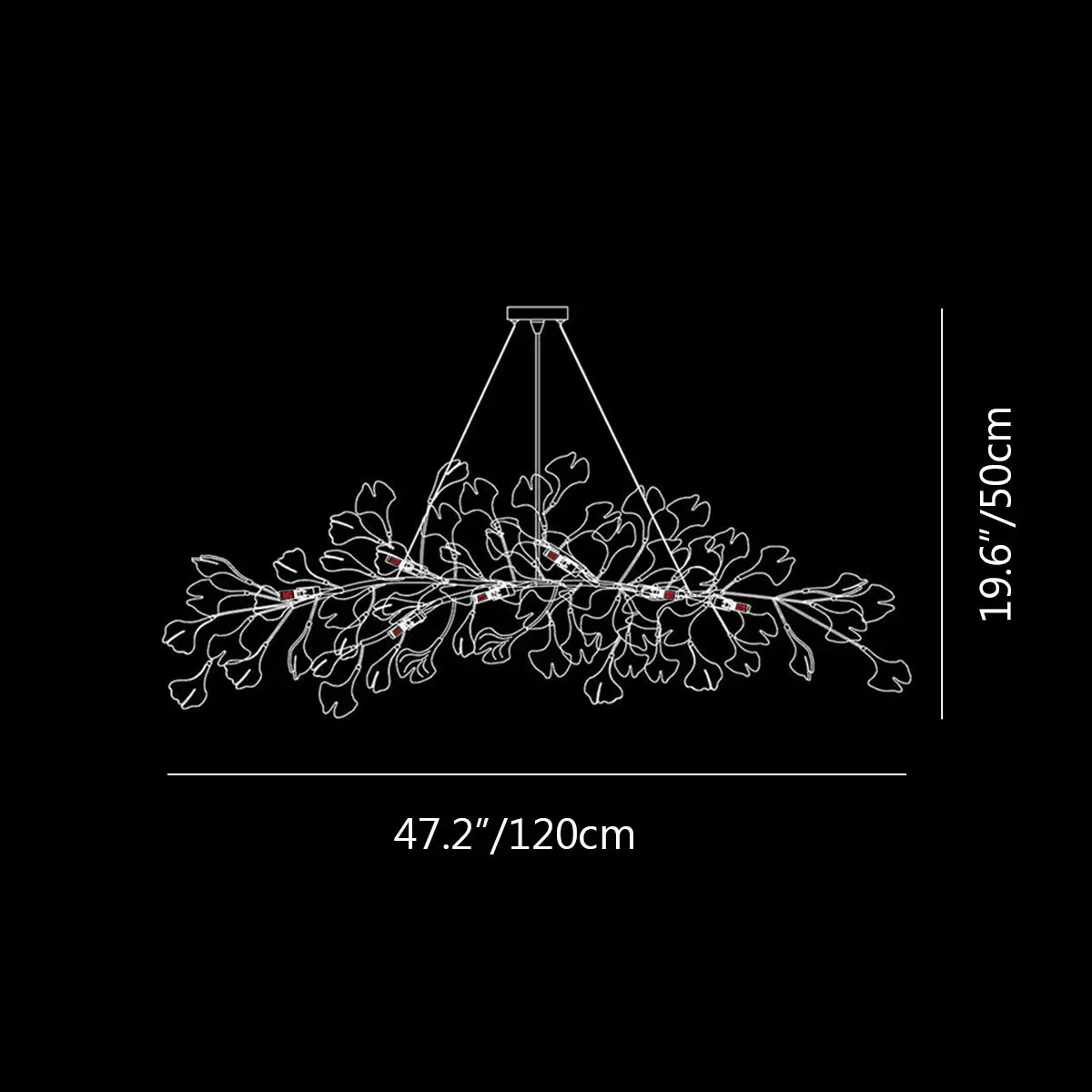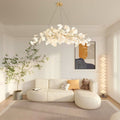 This Ginkgo Chandelier Style N combines luxury and nature, featuring a metal lamp body adorned with handmade ceramic petals. The chandelier’s unique design blends light and natural elements, creating a warm and soothing atmosphere.