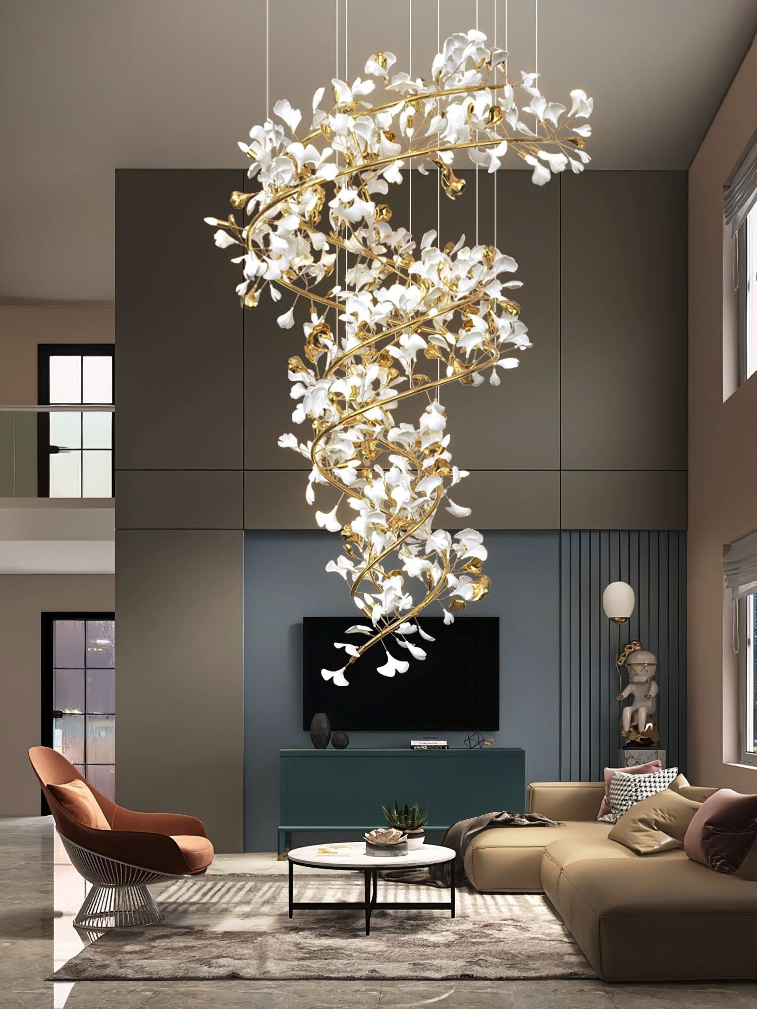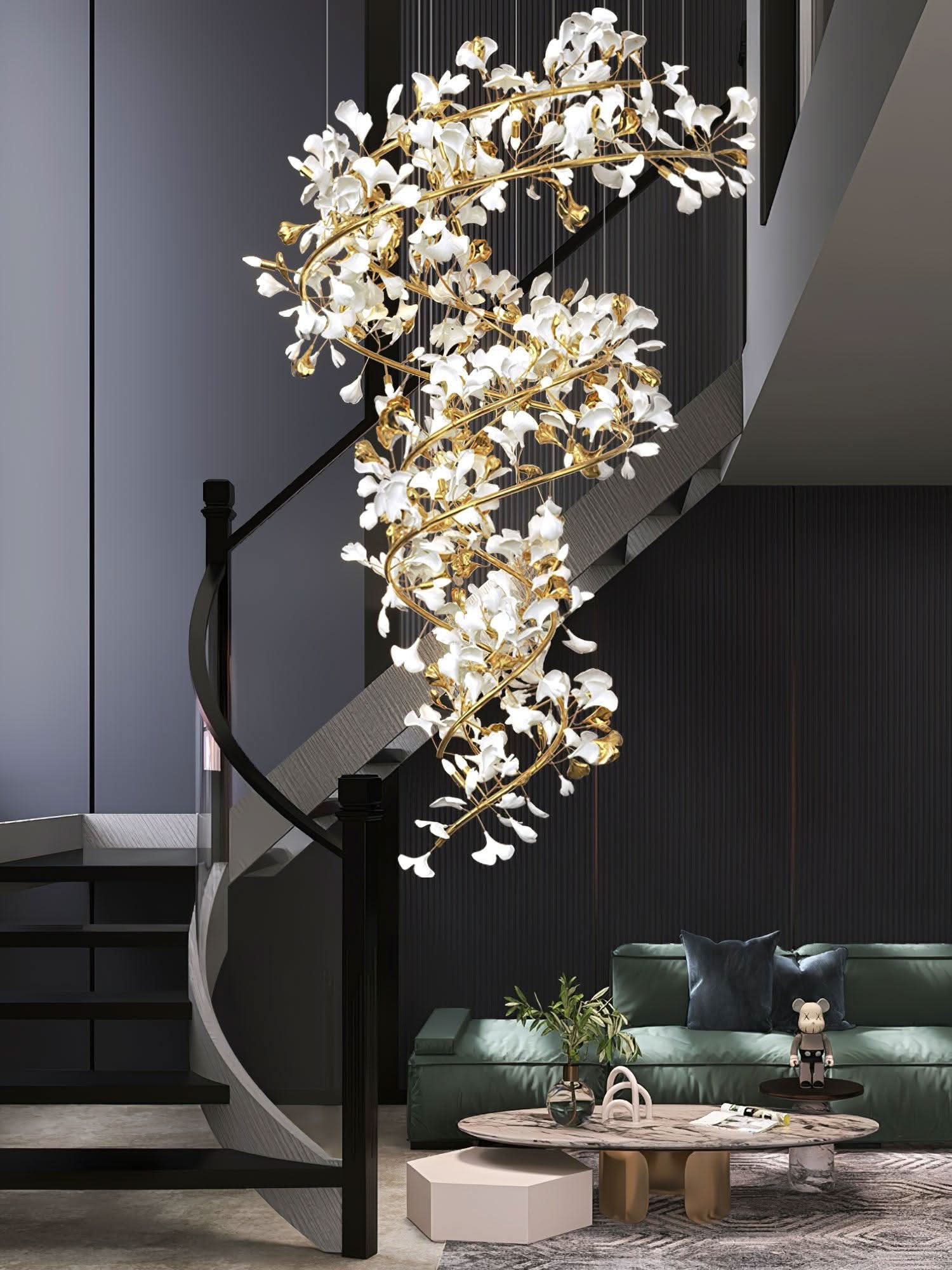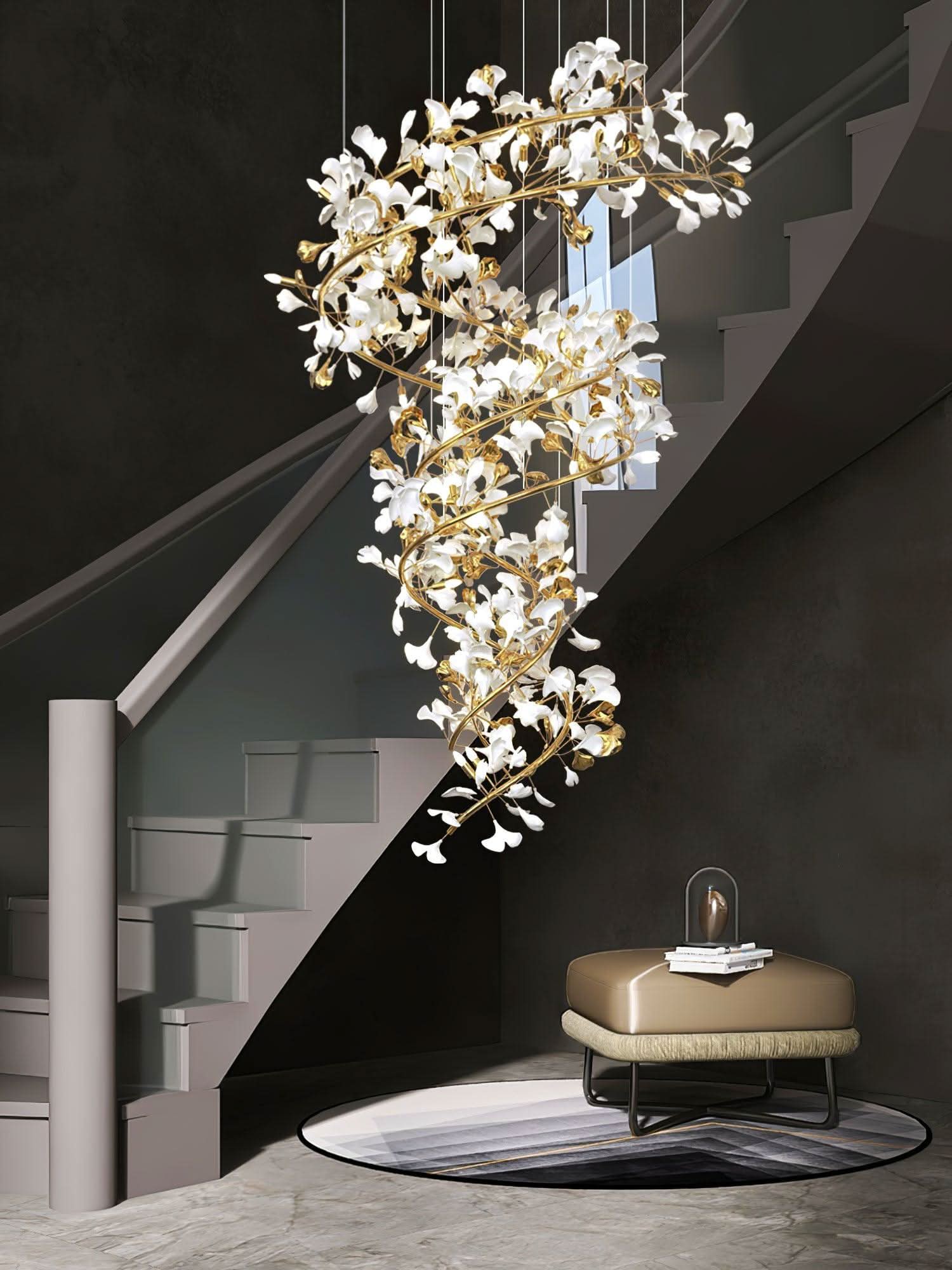 The Ginkgo Chandelier Style I is a breathtaking fusion of modern and classical aesthetics, elevating any space with its rich golden brass frame and delicate ceramic ginkgo leaves. This handcrafted masterpiece casts a warm and sophisticated glow, becoming the centerpiece of any room.