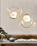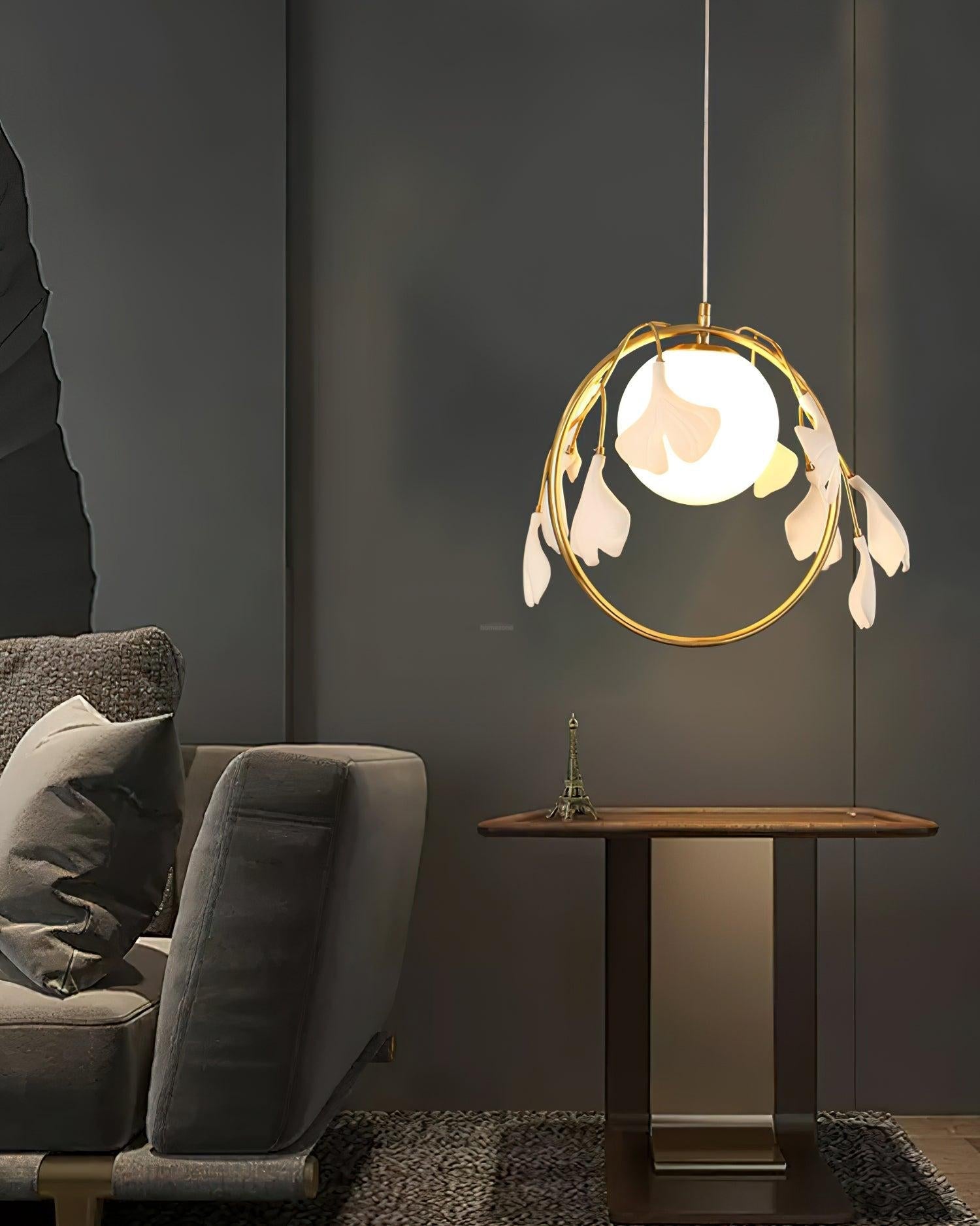 The Gingko Pendant Lamp offers a truly distinctive lighting option. Meticulously fashioned from copper and glass spheres, it artfully recreates the graceful form of Ginkgo leaves, producing a captivating visual display. The use of unique materials and translucent ceramics not only lends the blades a pleasing tactile quality but also ensures they enrich the aesthetic of any home decor. Elevate your living space with a touch of creative inspiration through this pendant lamp inspired by nature.