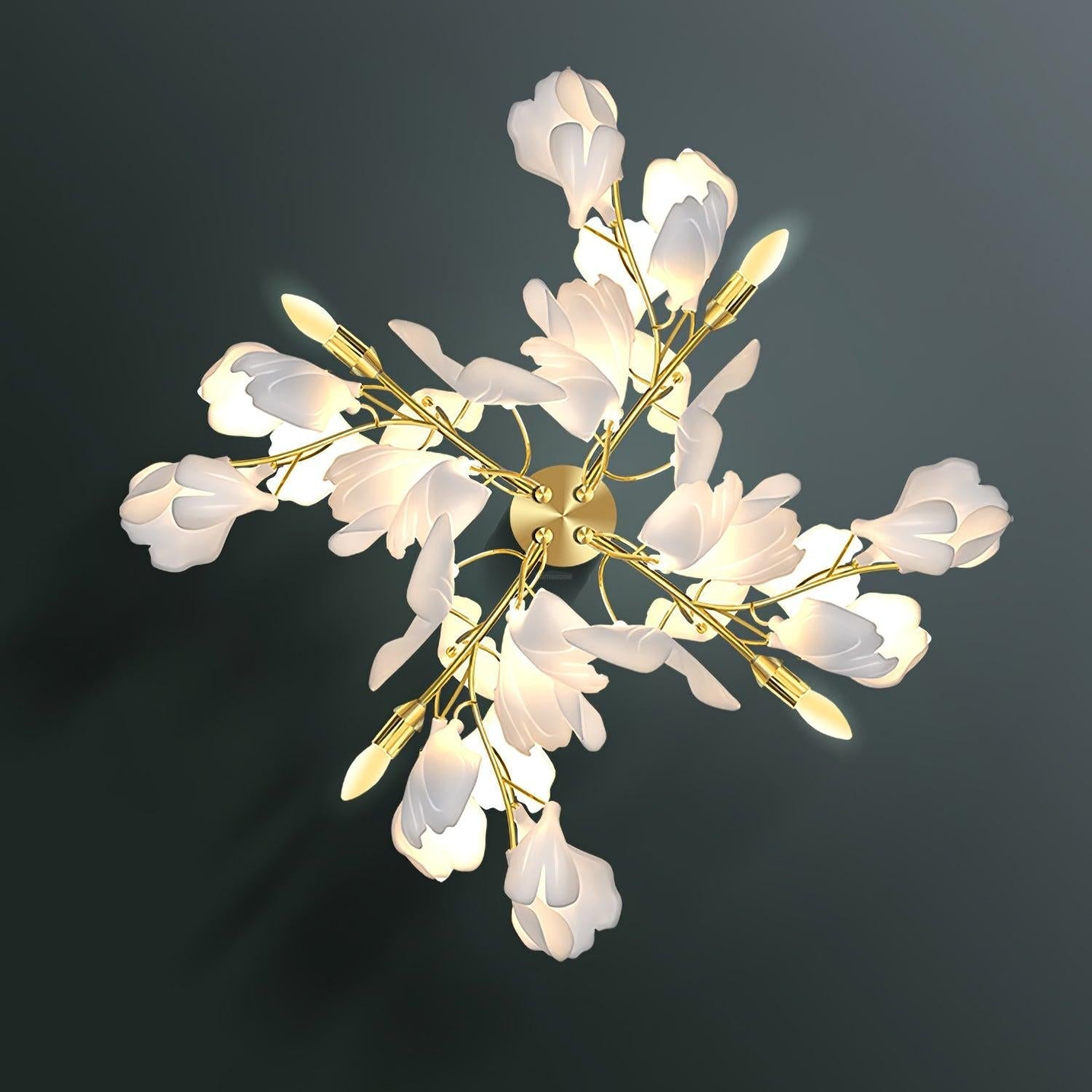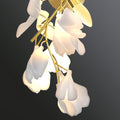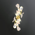 The Gingko Wall Lamp with Flower. Expertly crafted from premium gold and white metal, this mid-century sconce presents a gracefully sculpted silhouette that bestows subtle elegance upon any room it graces. Its captivating design brings a sense of warmth and luxury to your decor, instilling an inviting ambiance into any setting.