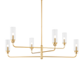 Inspired by the Art Deco movement, the long sweeping arms of Halifax curve upwards at the ends to support clear ribbed glass hurricane lamp shades. The aged brass framework evokes a sense of timelessness, while the slender silhouette of the fixture feels fresh and modern. Whether as a sconce or chandelier, Halifax seamlessly marries functionality with enduring grace.