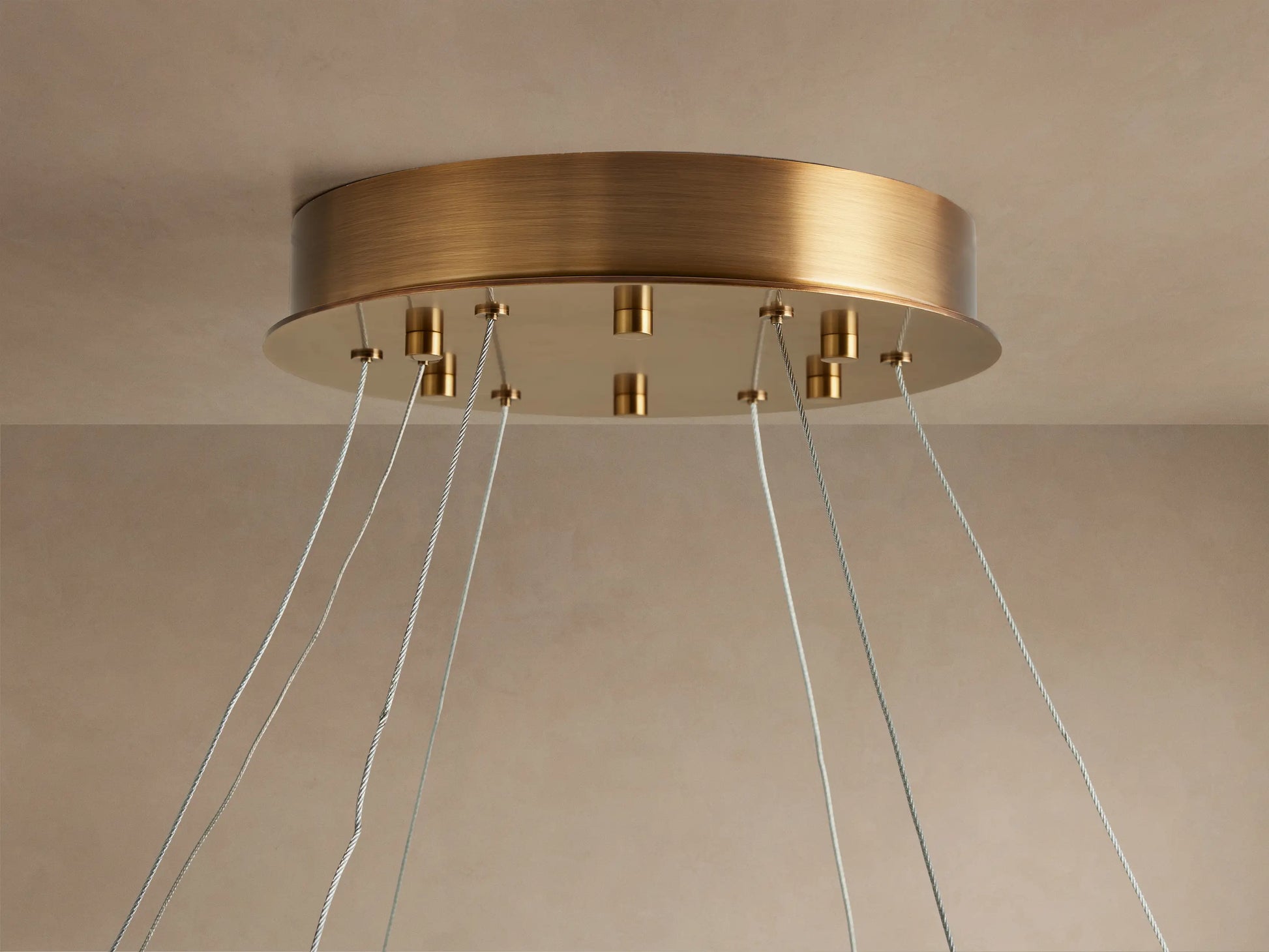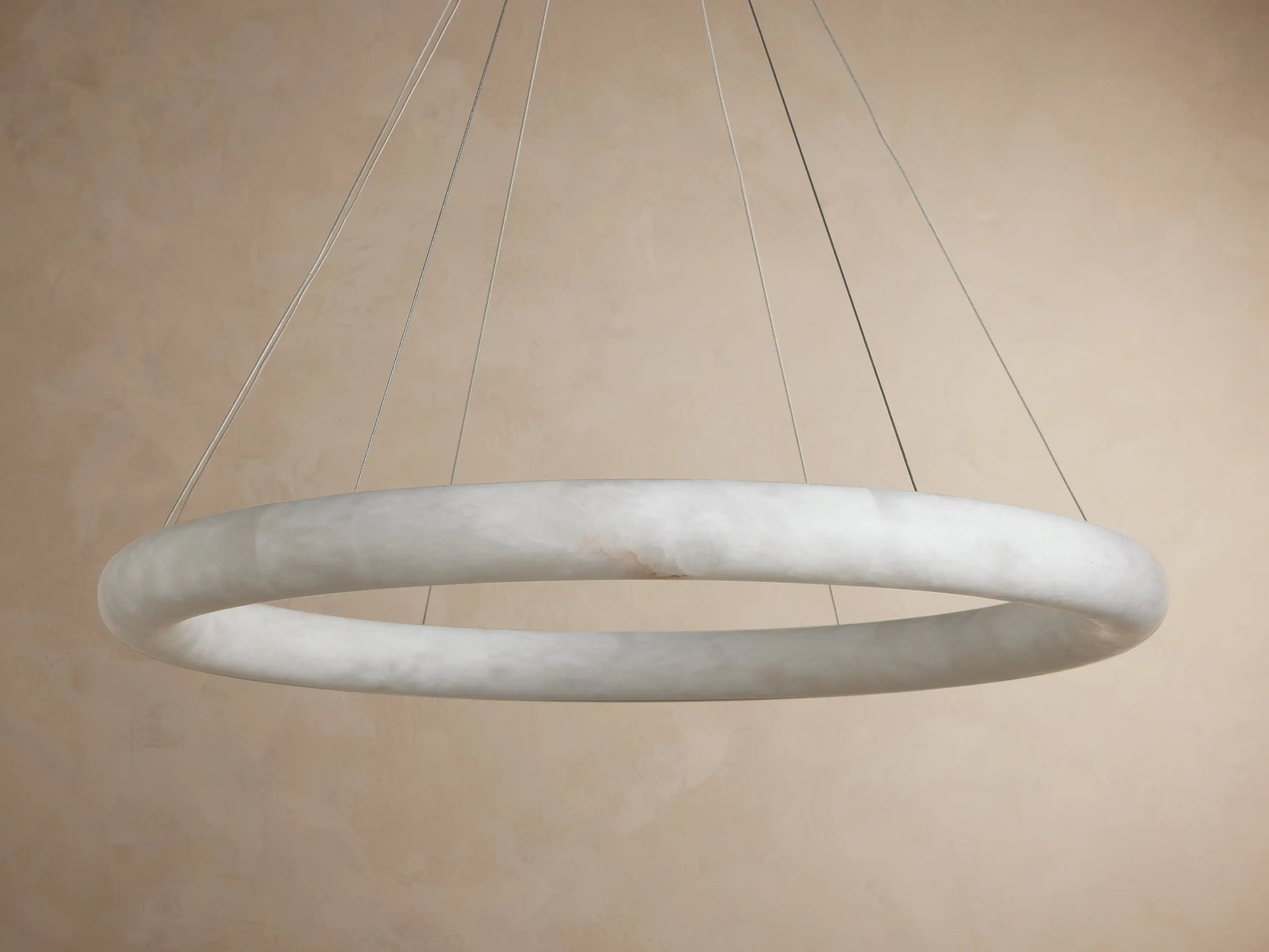 Crafted from ethereal Spanish alabaster, our Halima Lighting Collection glows from within—its integrated LED lights casting a warm, diffused radiance through the stone’s natural veining. Suspended by minimalist cables, Halima’s sleek design floats effortlessly overhead, blending timeless materiality with modern style.