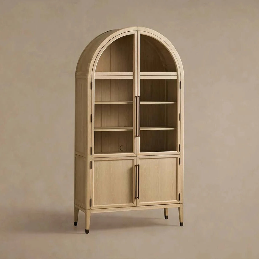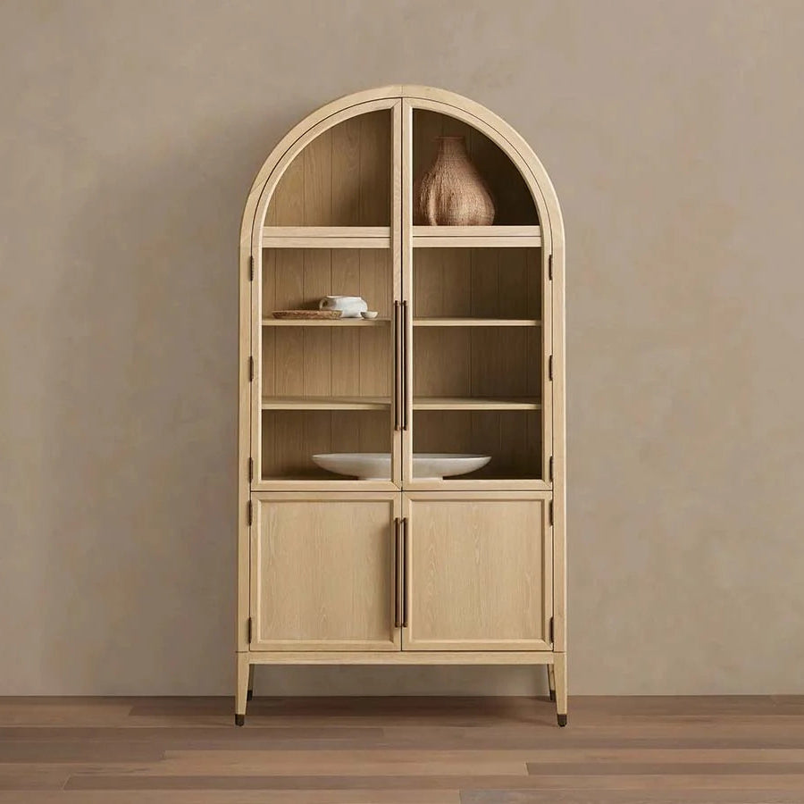 Where soft curves blend seamlessly with the natural beauty of oak, the artisan-crafted Hattie Collection stands ready. With spacious shelves, it offers ample room to showcase your cherished treasures and daily essentials.
