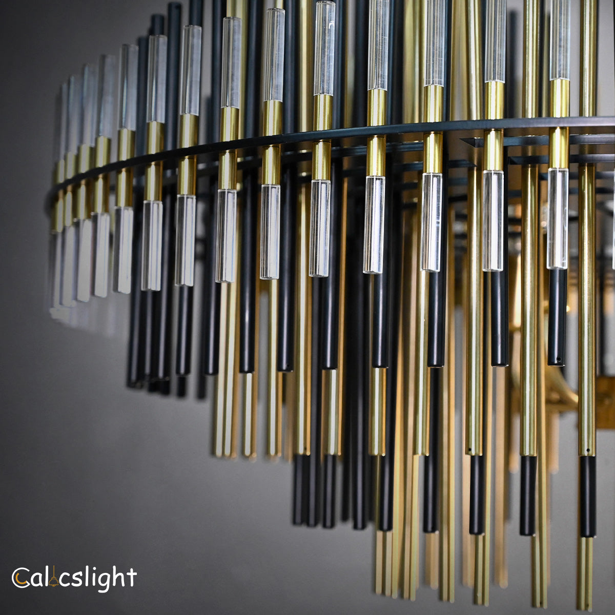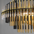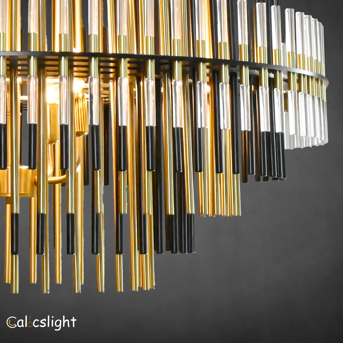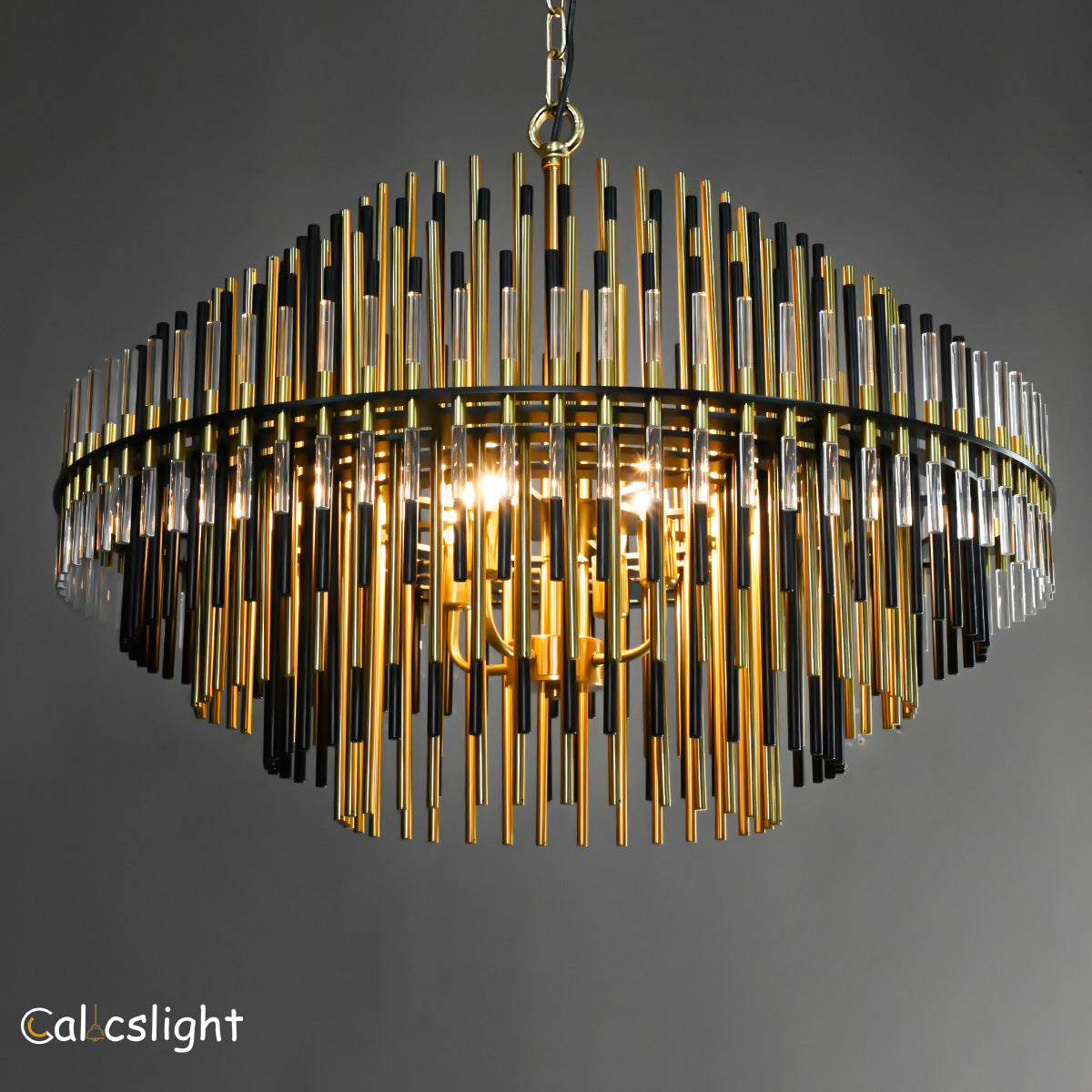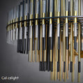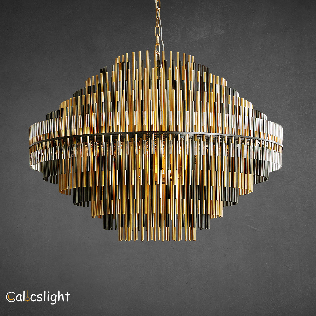 The Emory Series chandelier features a striking silhouette formed by concentric tiers of ascending and descending rods. Crafted from a mix of metal and acrylic, each layer filters and reflects the warm glow of integrated LEDs, creating a luminous and sculptural centerpiece. Finished in Burnished Brass or Pewter, the design offers a refined balance of modern geometry and atmospheric lighting.