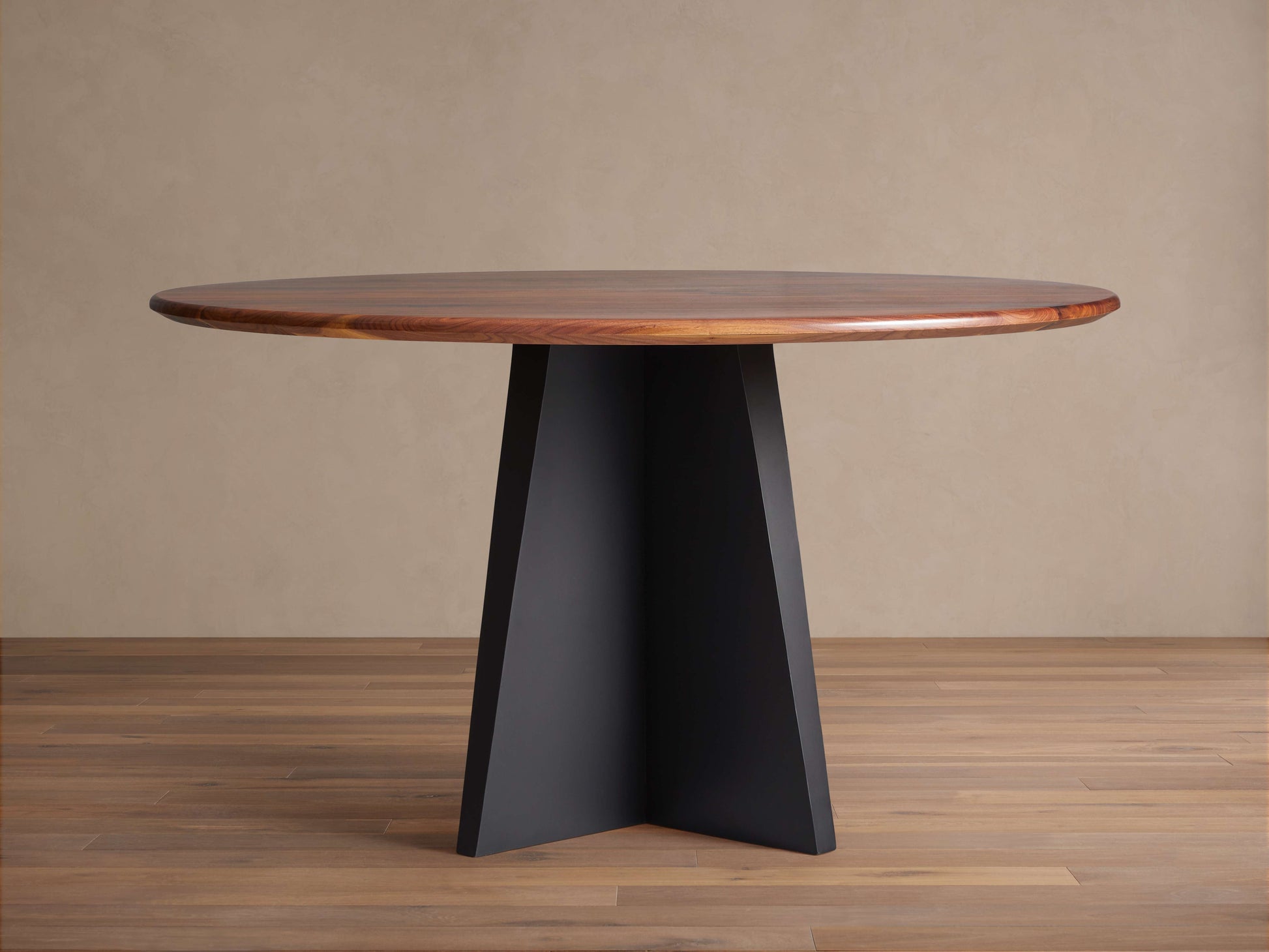 Our Jacob Dining Collection celebrates craftsmanship with sleek and modern style, bringing natural wood into contemporary dining spaces. Tabletops are made from solid oak and walnut, handcrafted by a community of Amish artisans. Oils, stains, and varnishes are applied to each tabletop by hand, creating high-gloss finishes that accentuate the wood’s natural beauty. Vertex Table Bases are crafted from iron, featuring a flat black finish to complement the beautiful tones of the wood.