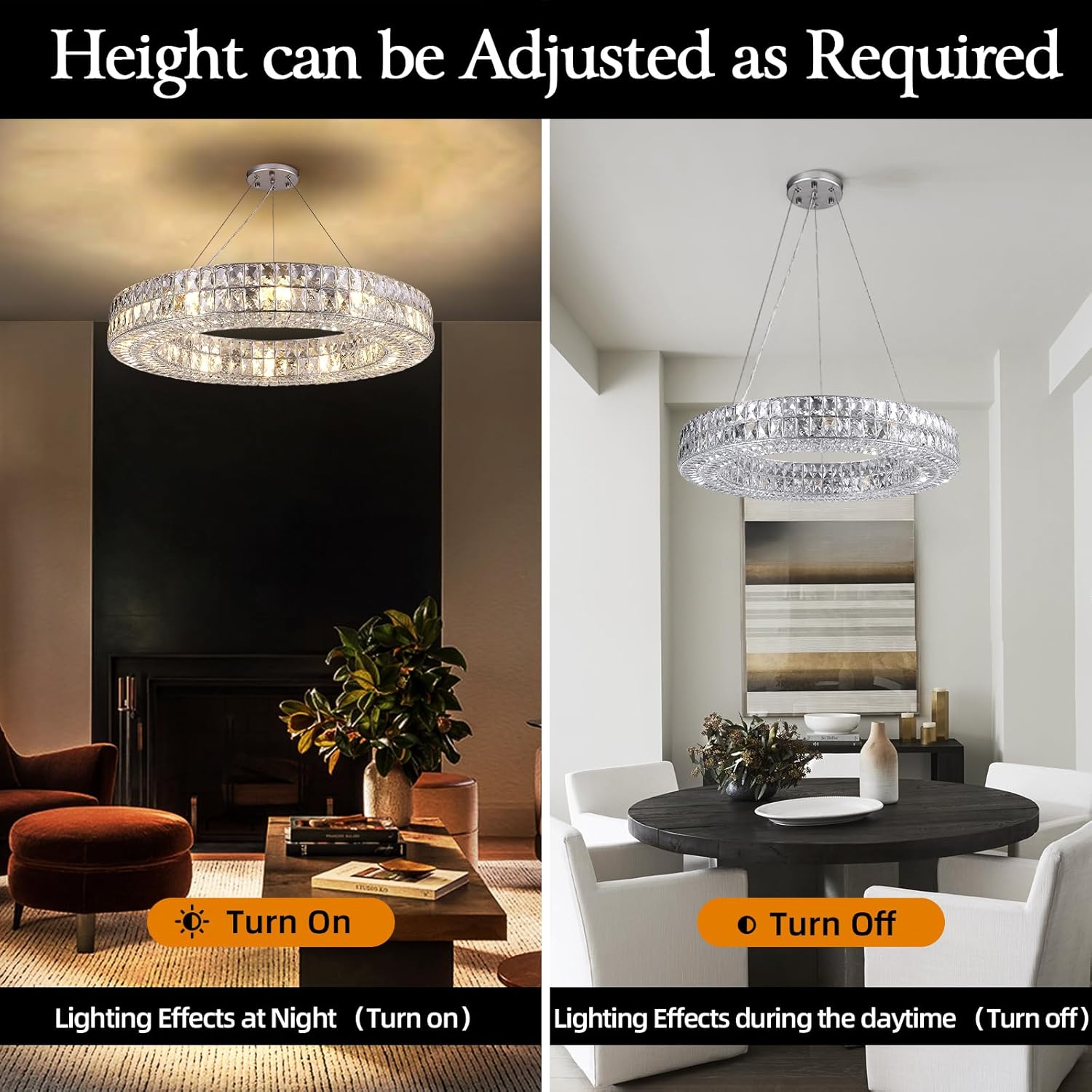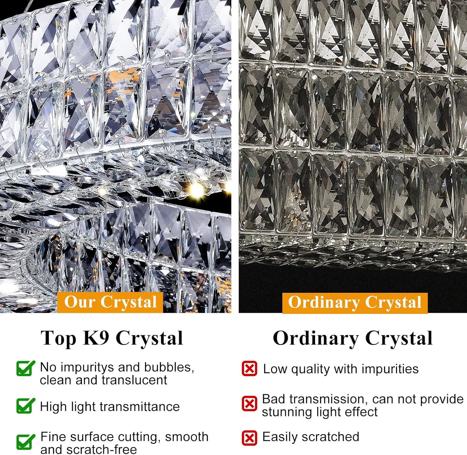 his modern chandeliers is crafted using 100% K9 crystal, with each crystal radiating a breathtaking brilliance, infusing your space with a distinctive and dazzling charm. Renowned for its high refractive index and exceptional transparency, K9 crystal ensures that the radiant glow is showcased to perfection in the light.