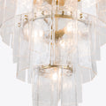 These vintage-inspired chandeliers are comprised of tiers of coloured murano glass plates, each of which is individually bolted to a brass finish frame