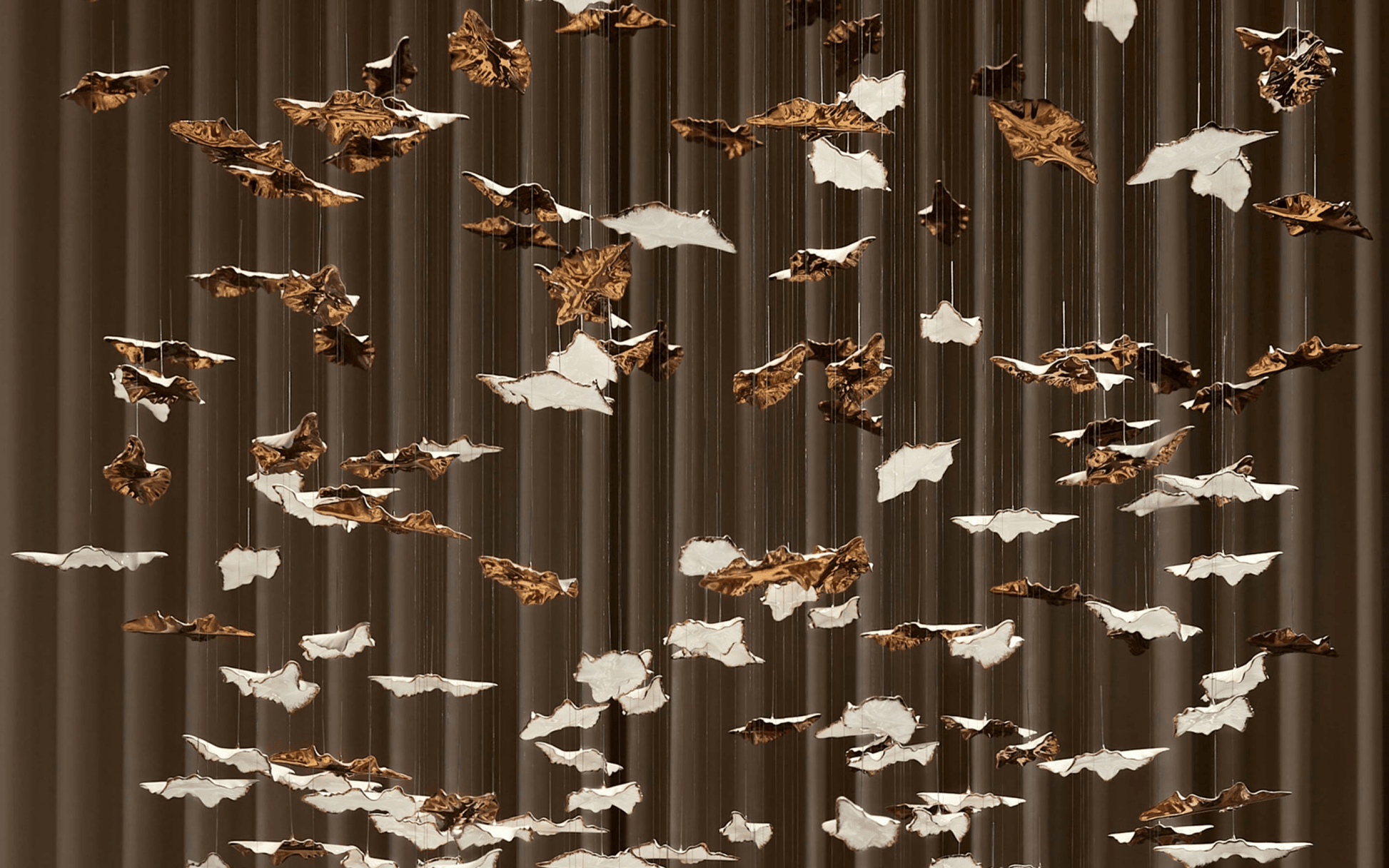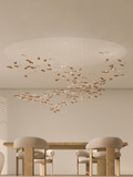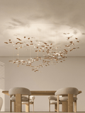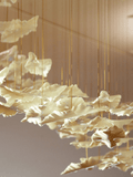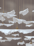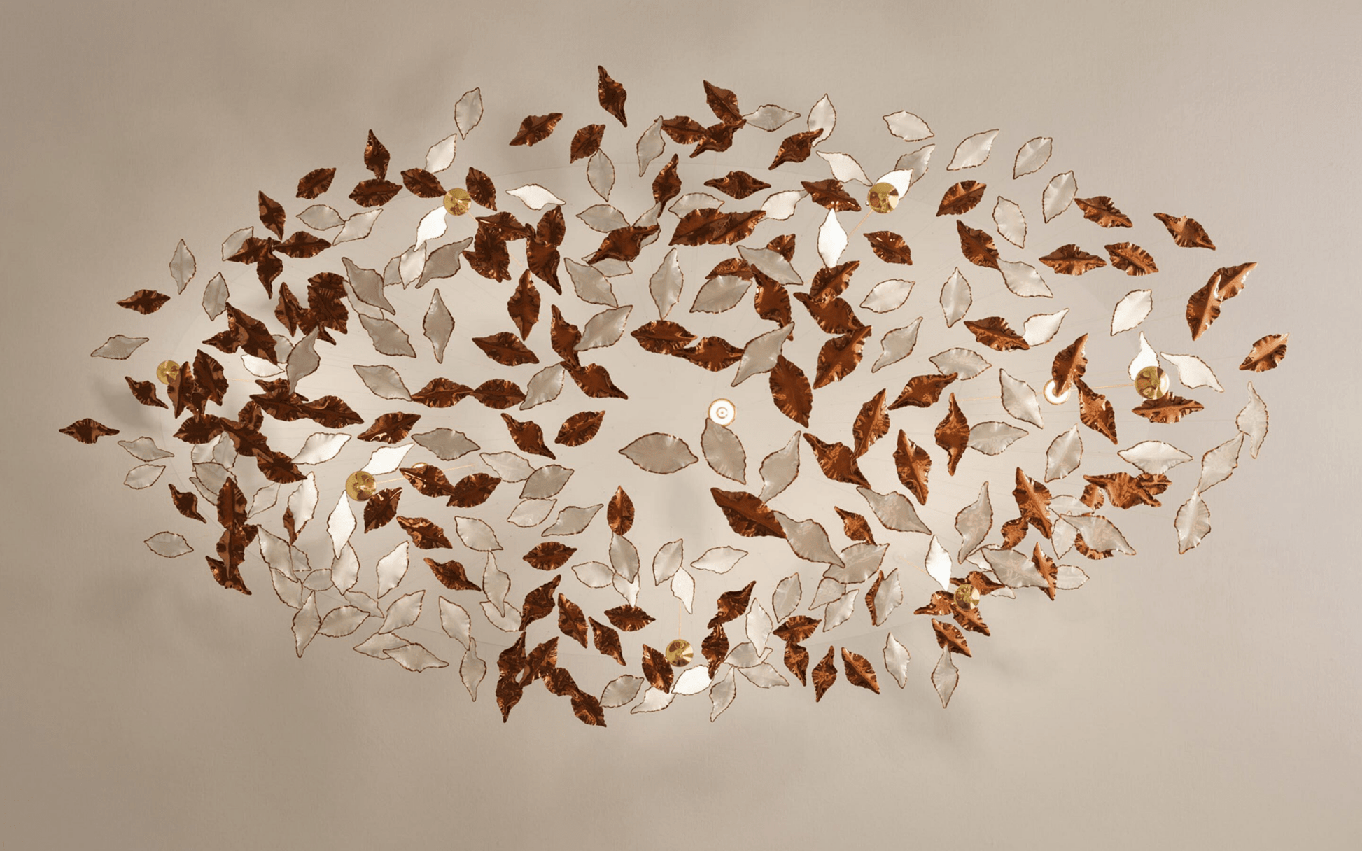 The Leaf Twisted Sculptural Chandelier by Hermanlamps is a striking artistic statement, featuring hundreds of delicately crafted glass leaves suspended in a sweeping, organic formation. Each leaf is twisted to catch light from different angles, creating a dynamic play of reflection and shadow. The result is a stunning display of nature-inspired elegance, ideal for high-ceiling interiors.