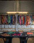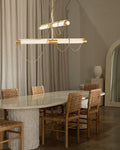 LED Tubular Alabaster Shades Ceiling Pendant Lamp 49" with long chains | Brass