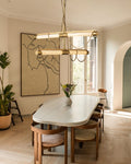 A Roman-inspired fusion of structured elegance + fluid chains, crafted in glowing alabaster + knurled brass.