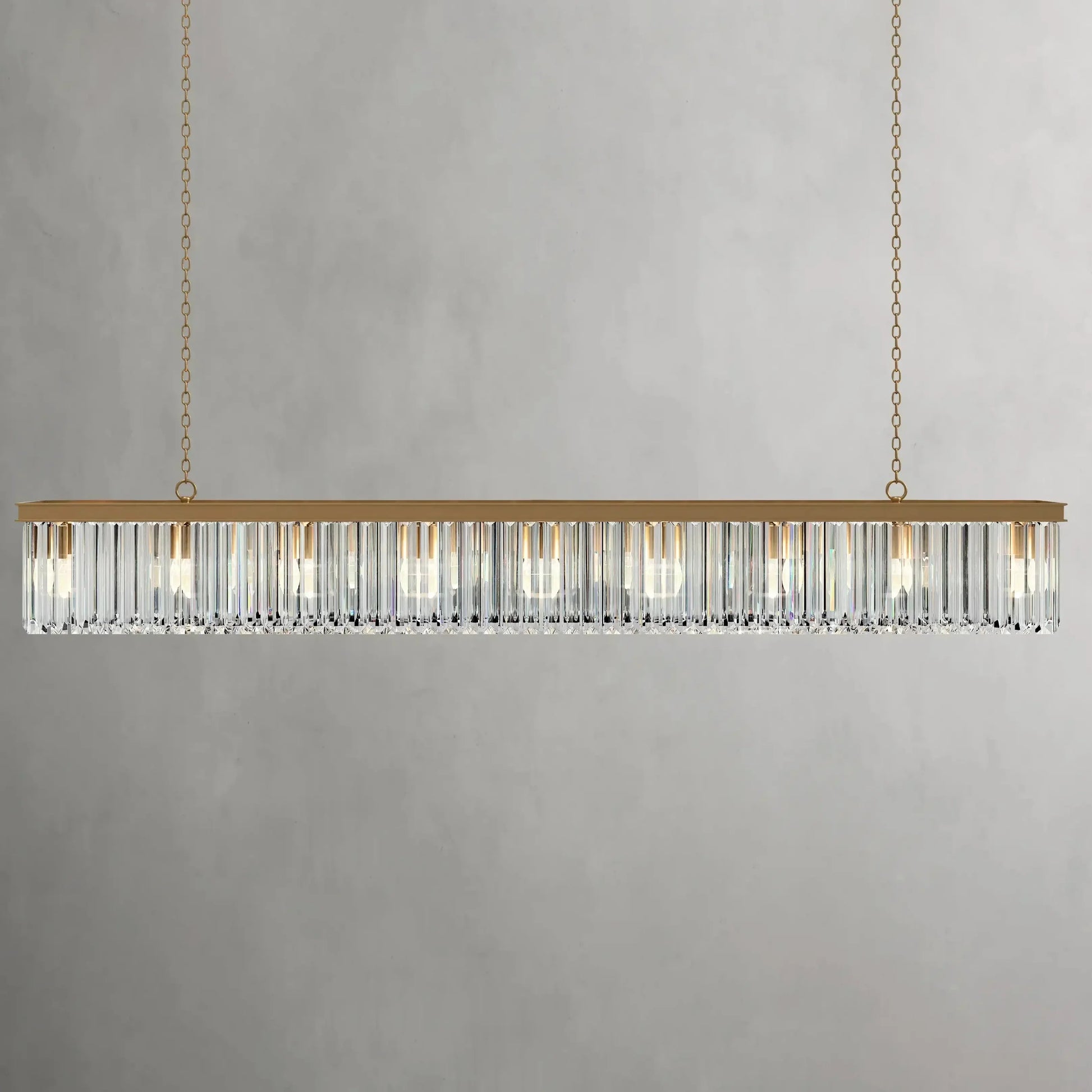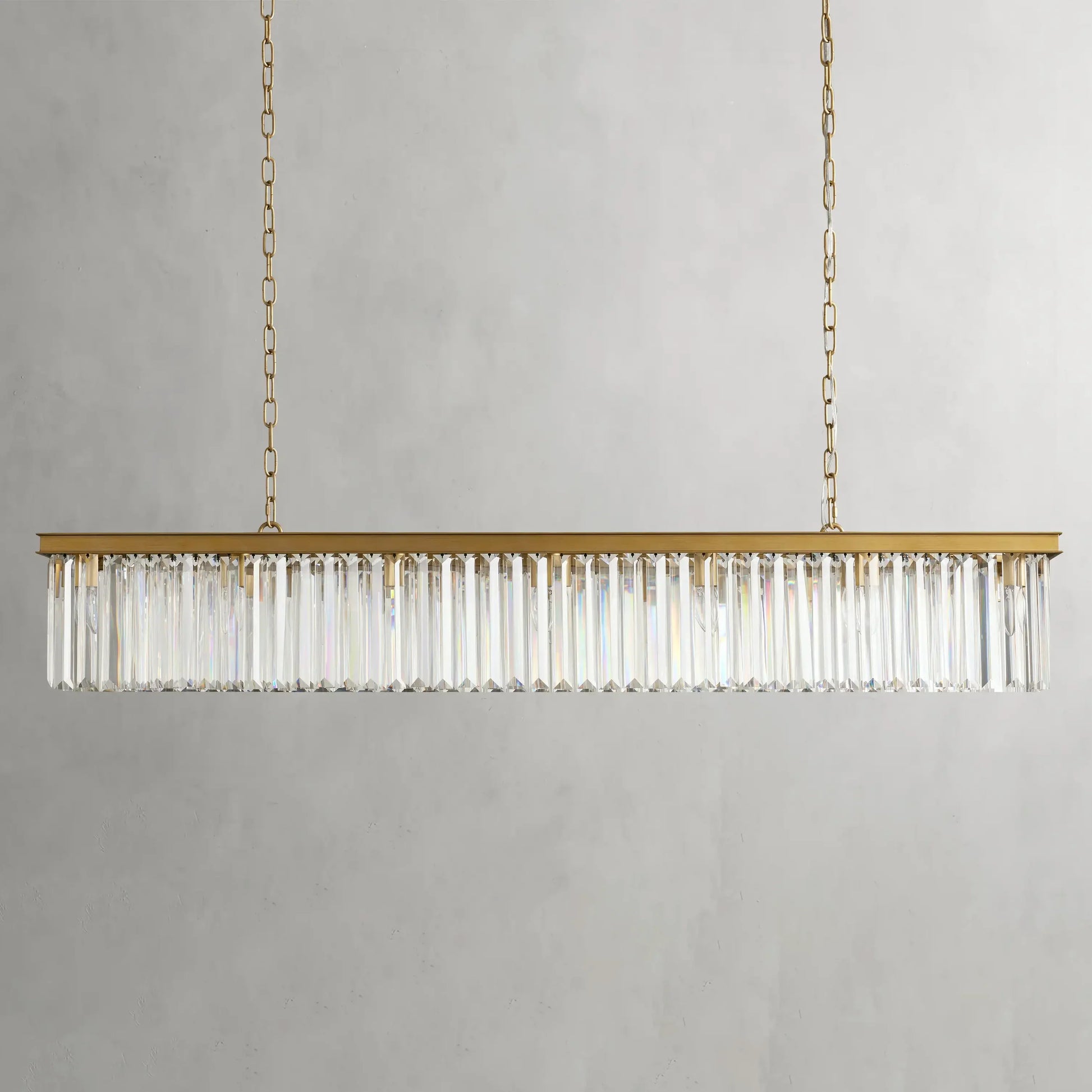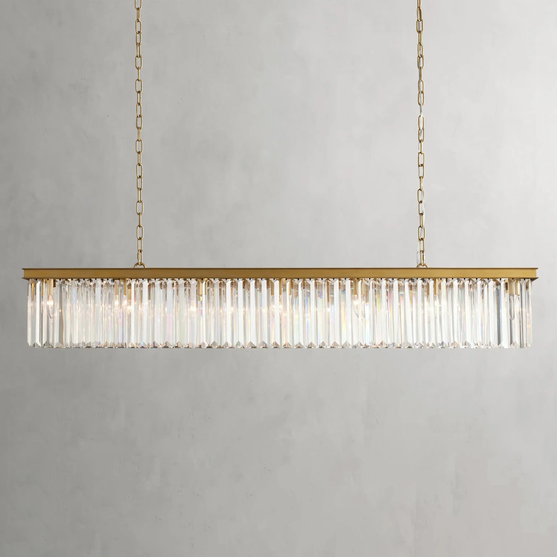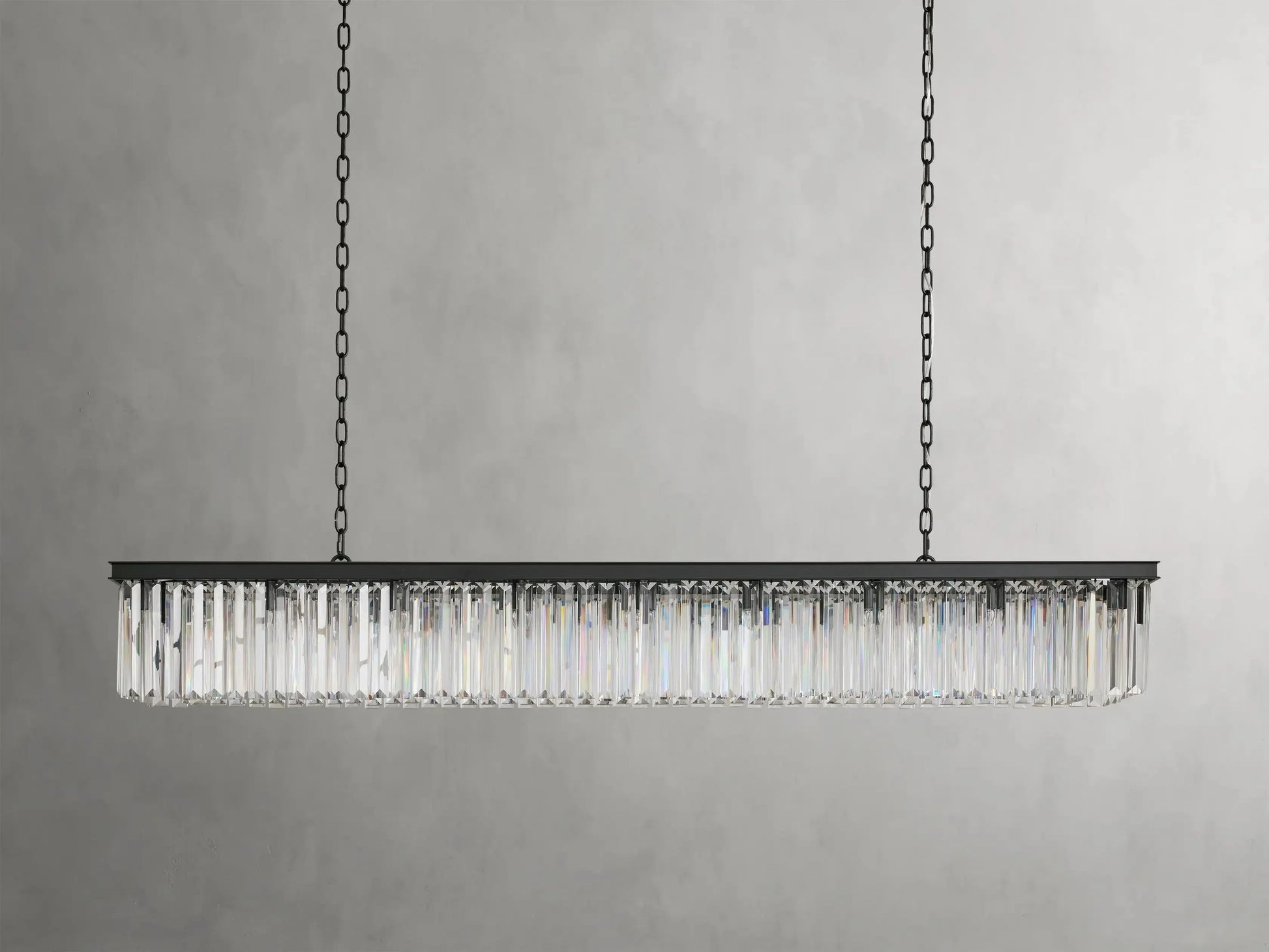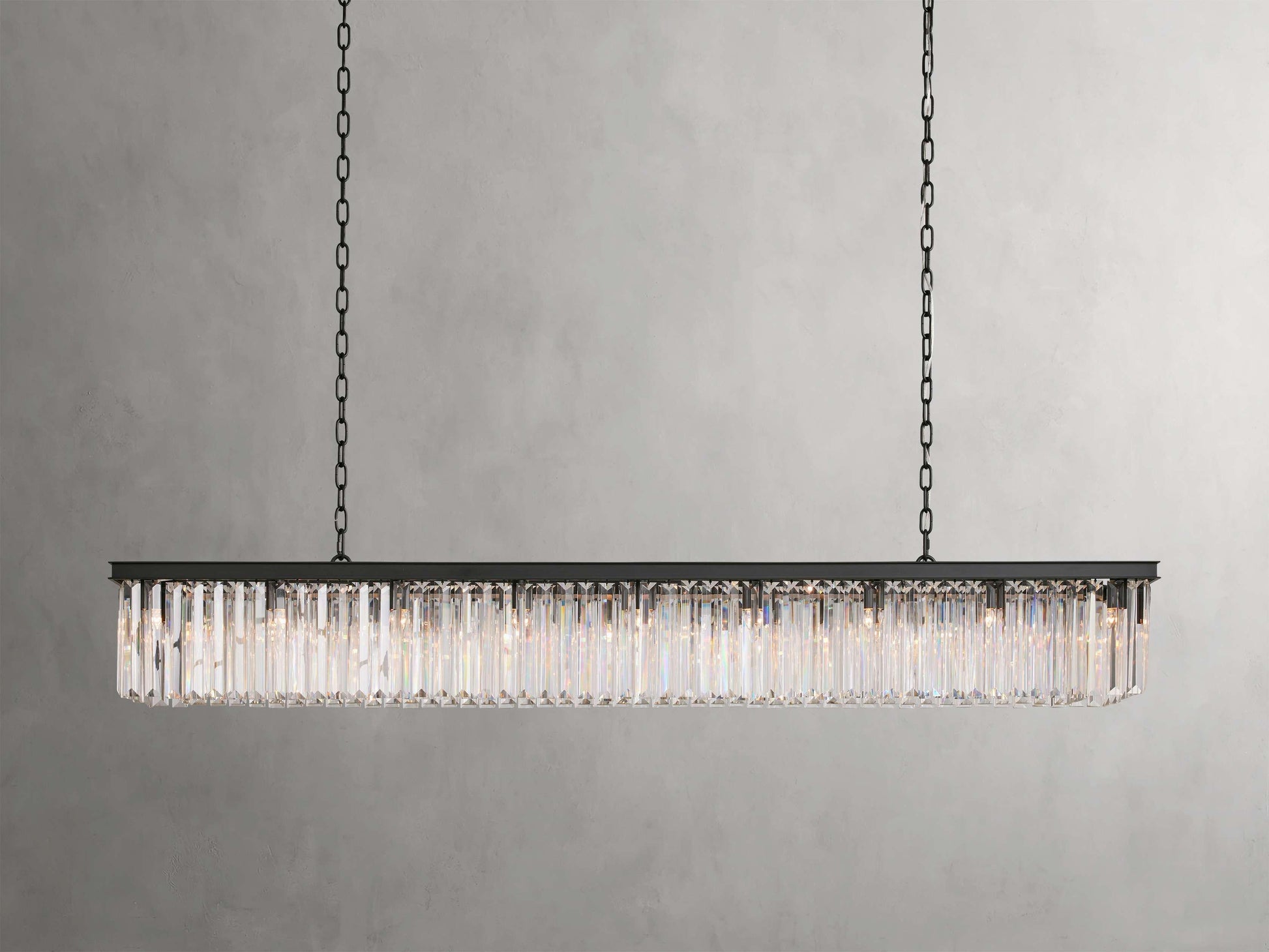 French Art Deco style of the 1920s is reborn in our glamorous Reis Lighting Collection. Hung from a rustic iron frame, Leyland creates an atmospheric glow with its rows of hand-polished multifaceted glass crystals.