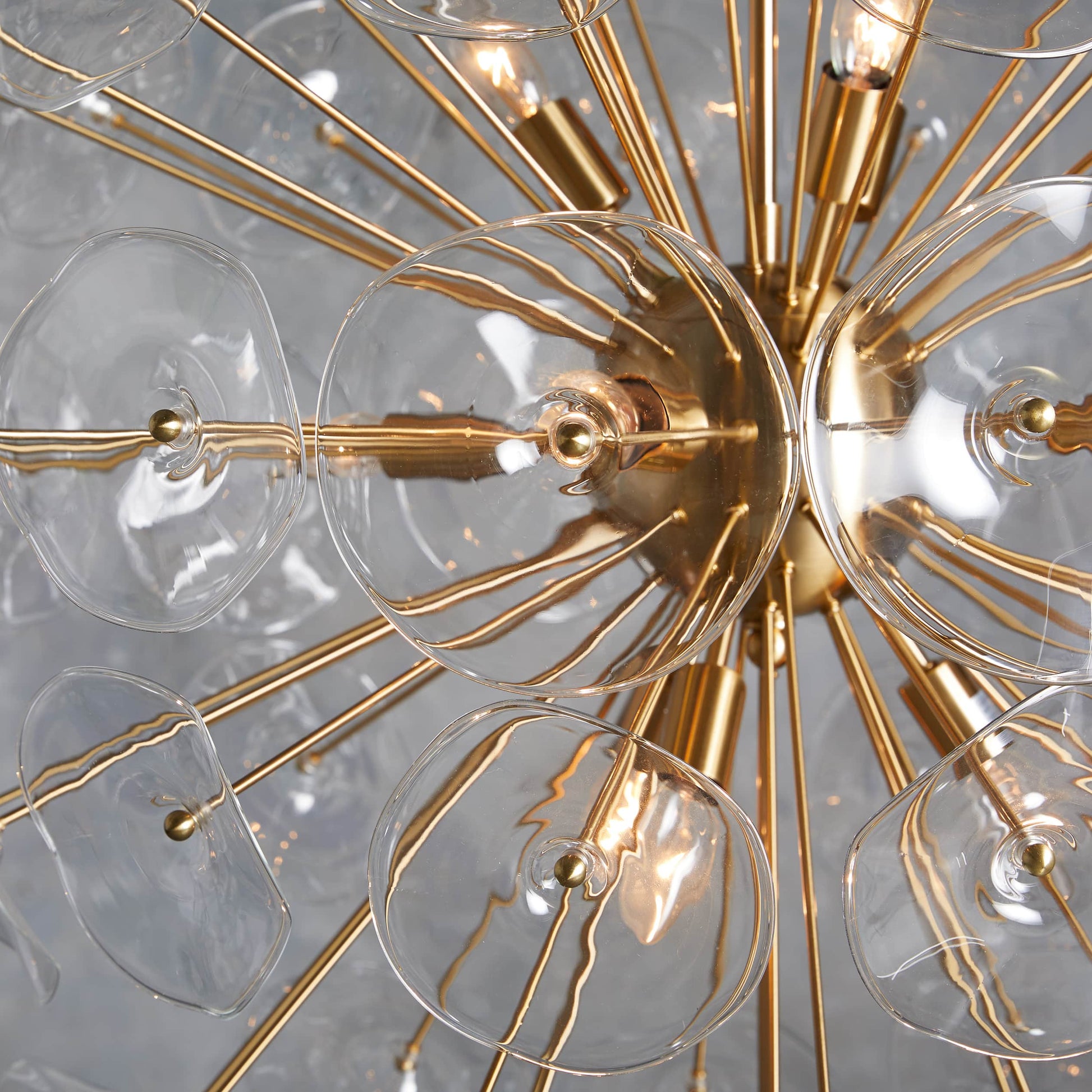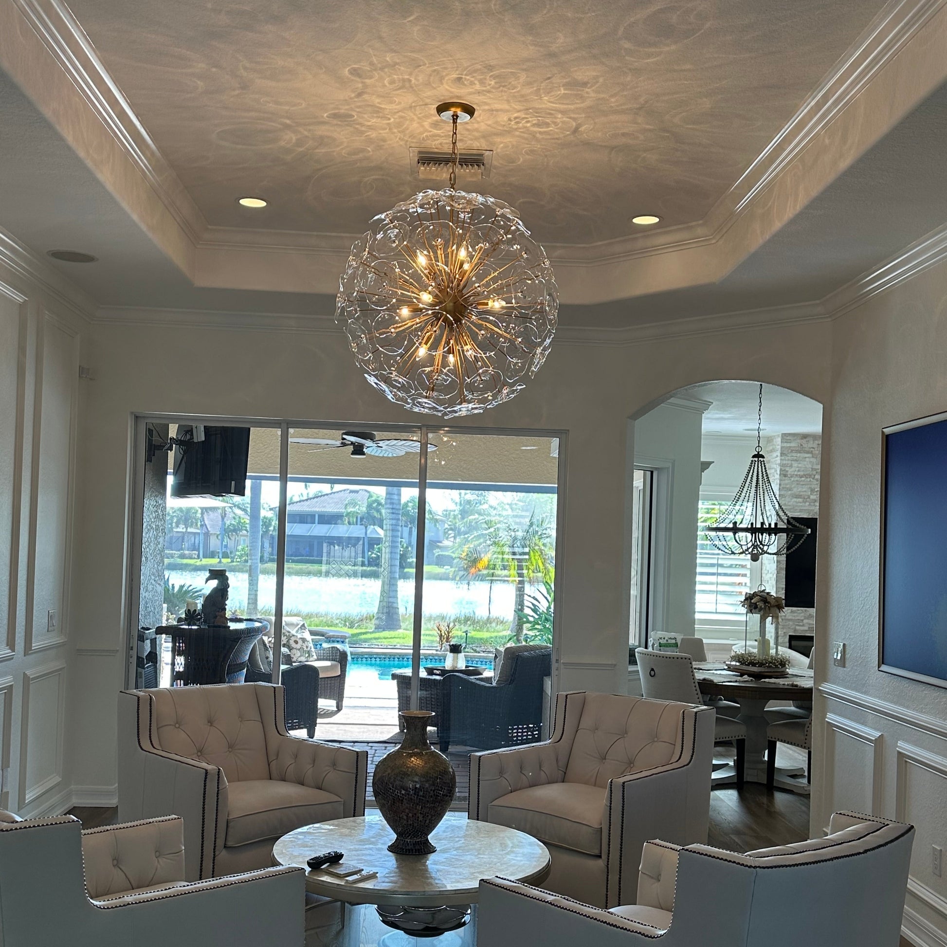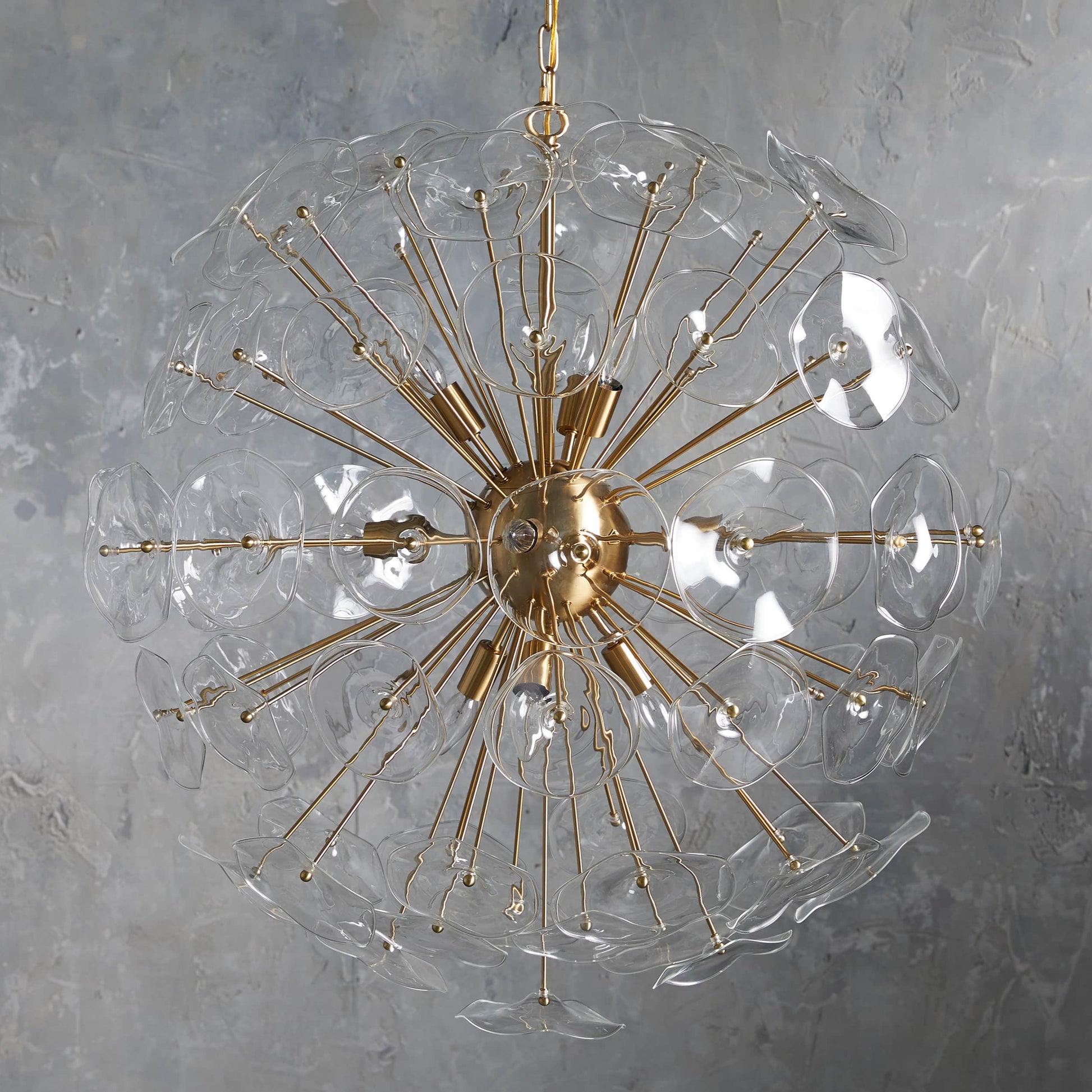 The Lily Round Chandelier is a stunning blend of elegance and modern design, featuring delicate glass petals surrounding a sleek iron frame. Its soft, ambient glow from multiple light options creates a captivating focal point in any room, adding a touch of luxury and sophistication to your space. Perfect for elevating dining rooms, living areas, or entryways with its timeless beauty and graceful presence.