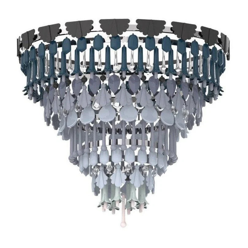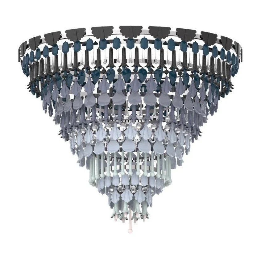 The Four Seasons pendant lamps are inspired by Art Deco and nature. The Four Seasons collection combines the unique Art Deco style with the rich colors and forms of the four seasons. The subtle use of color reveals the unique beauty of each stage of nature, and changes subtly according to the change of day and night. The colors are hand-applied in gradient colors on the fragments that resemble green leaves. The shining glass elements interweave with the porcelain to add to this magical feeling. The Four Seasons collection is versatile and memorable, integrating natural elements into any interior space. At sunrise, white becomes the main color, just as the darkness of the night gradually fades away, replaced by the dazzling light of day, and everything comes to life. In autumn, the vegetation in the countryside is everywhere, with soft tones. Purple, green and gray interweave into a symphony of colors, embellished with gold, forming a symphony of exquisite harmony. In winter, the gradient tones of blue, lavender and burgundy bring elegance and tranquility to the coldest time of the year, but also the most memorable.