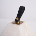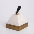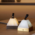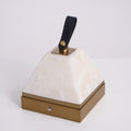 The Luma Cube Portable Lamp expertly merges natural alabaster with metal in a refined pyramid-inspired form. Its translucent stone emits a gentle, soothing light, complemented by a robust metal base that ensures stability and visual contrast. Featuring a leather handle for effortless portability, this cordless lamp includes a built-in rechargeable battery, making it ideal for bedside tables, workspaces, or outdoor settings.