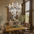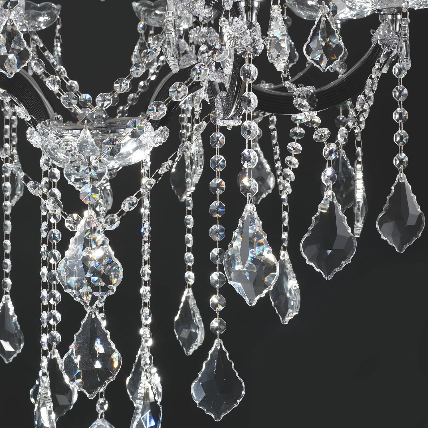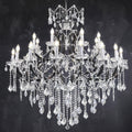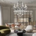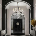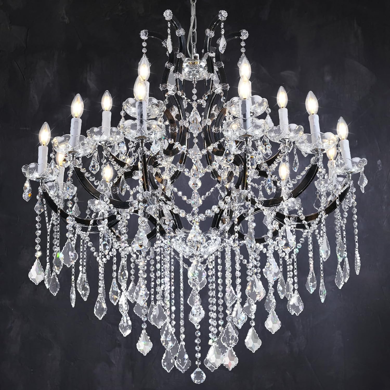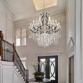 Rococo Iron & Crystal Chandelier for foyer features genuine K9 crystals & thickened metal, each crystal is delicately carved & polished, sparkling & luxurious. The black glass finish gives the high ceiling chandelier a cool and modern style that fits any of your decor, elevating your space and adding sophistication.