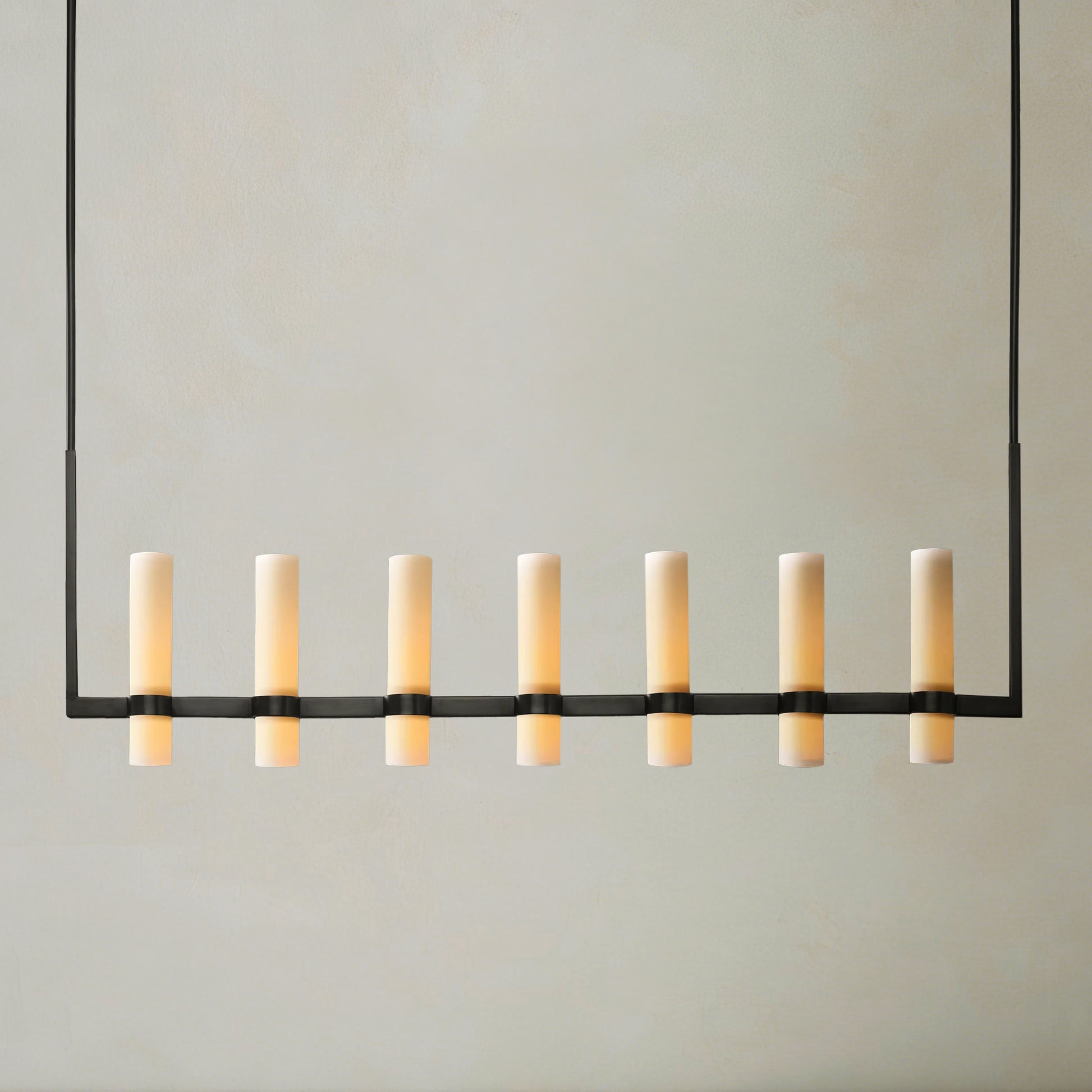 The series is crafted from solid steel, with simple metal rings securely supporting slender glass cylinders to create a perfect balance. Inside each glass cylinder, Edison bulbs emit a warm glow reminiscent of candlelight.