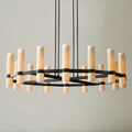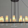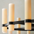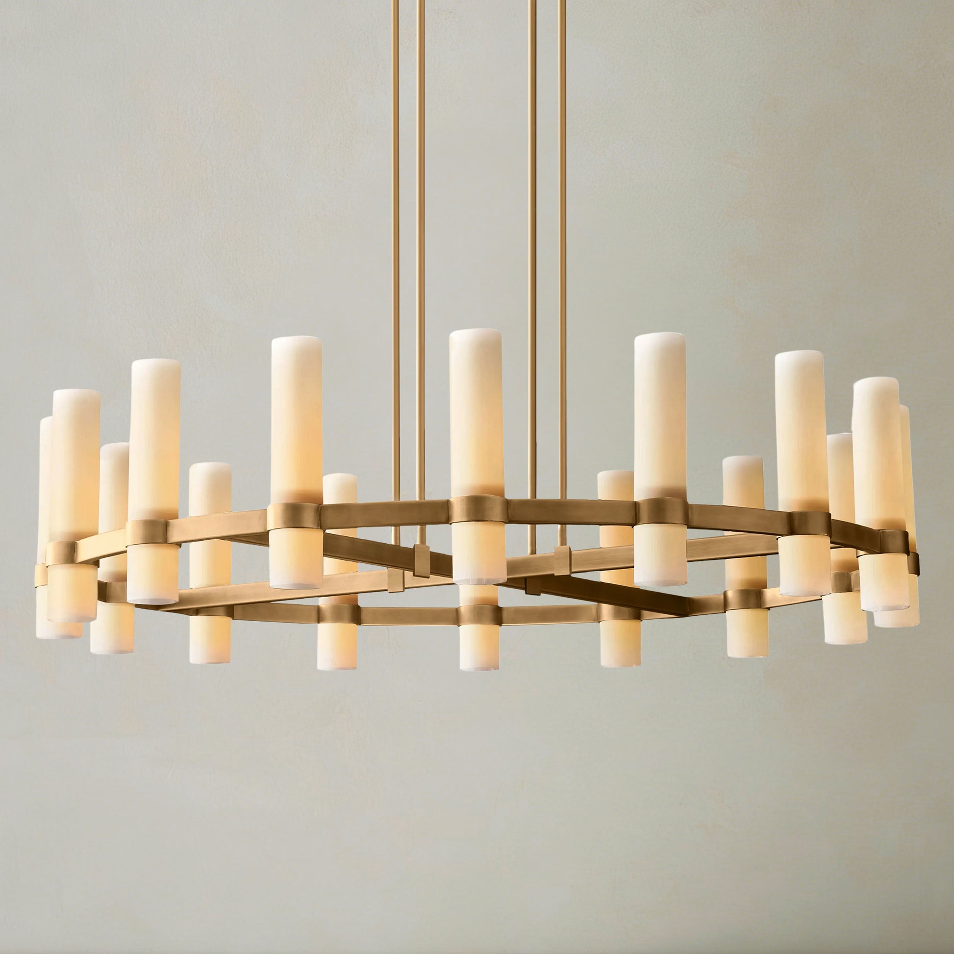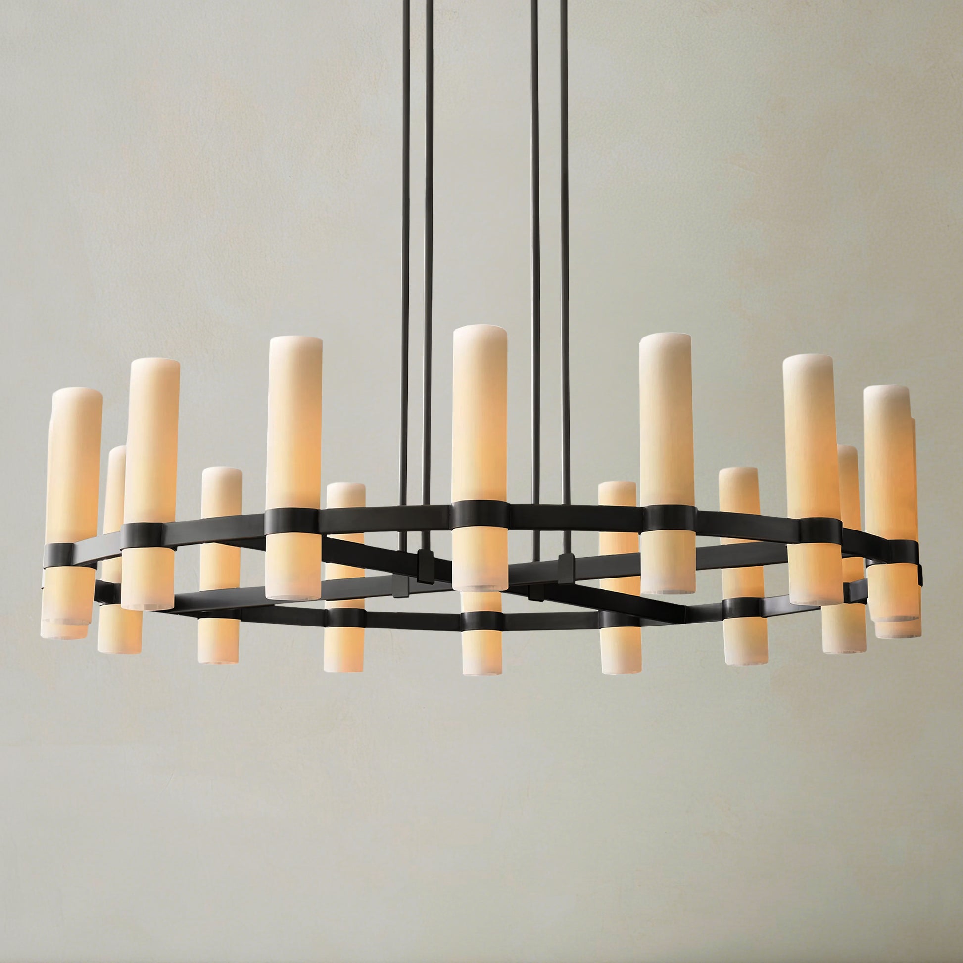 The series is crafted from solid steel, with a simple metal ring securely supporting a slender milk glass cylinder, creating a perfect balance. Inside each cylinder, Edison bulbs emit a warm glow reminiscent of candlelight.