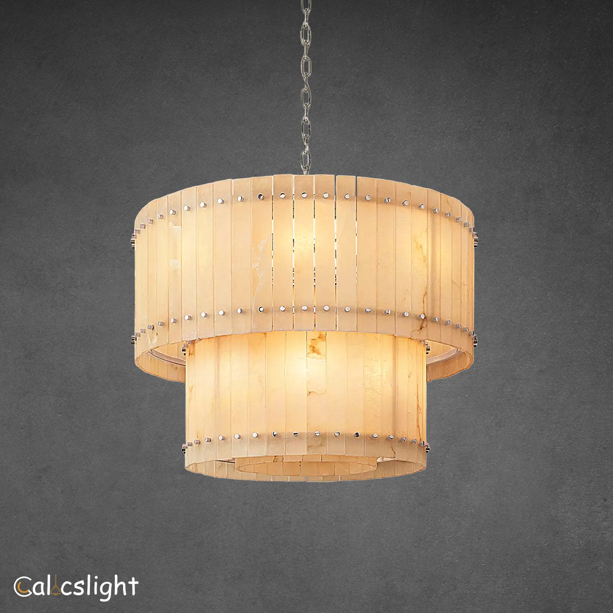 The Marcus Alabaster Round Tiered Chandelier 48" is a luxurious and dramatic lighting piece designed to elevate any space. With its large 48-inch diameter and tiered alabaster design, it exudes grandeur while providing soft, diffused light. Ideal for expansive dining rooms, ballrooms, or grand entryways, this chandelier makes a bold statement, combining classic beauty with refined elegance. Its sophisticated glow enhances both the atmosphere and decor, making it the perfect centerpiece for high-ceilinged rooms.