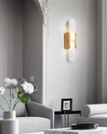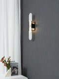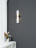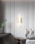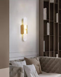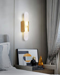 This sleek and polished furnishing piece brings a timeless beauty to any room. With its hand-crafted alabaster construction and brass accents, the Melange Elongated Alabaster Wall Lamp is a chic, modern blend of traditional and contemporary styles. Enjoy the perfect balance of form and function.
