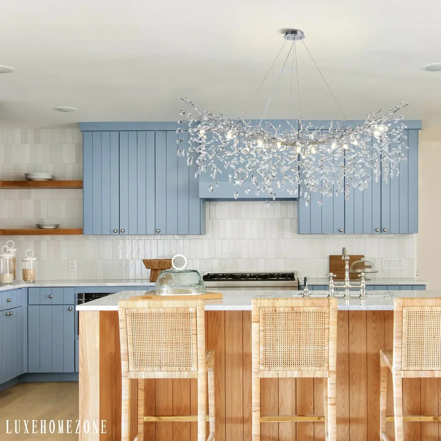 The Solara Rectangular Chandelier 55" 72" Tree Branch Tree Branch stands as a luxurious and intricately designed masterpiece, ideal for grand staircases or as a captivating focal point in rooms or lobbies, making a bold statement. This chandelier is part of our branch detail chandelier collection, drawing inspiration from the beauty of nature and meticulously handcrafted to perfection.